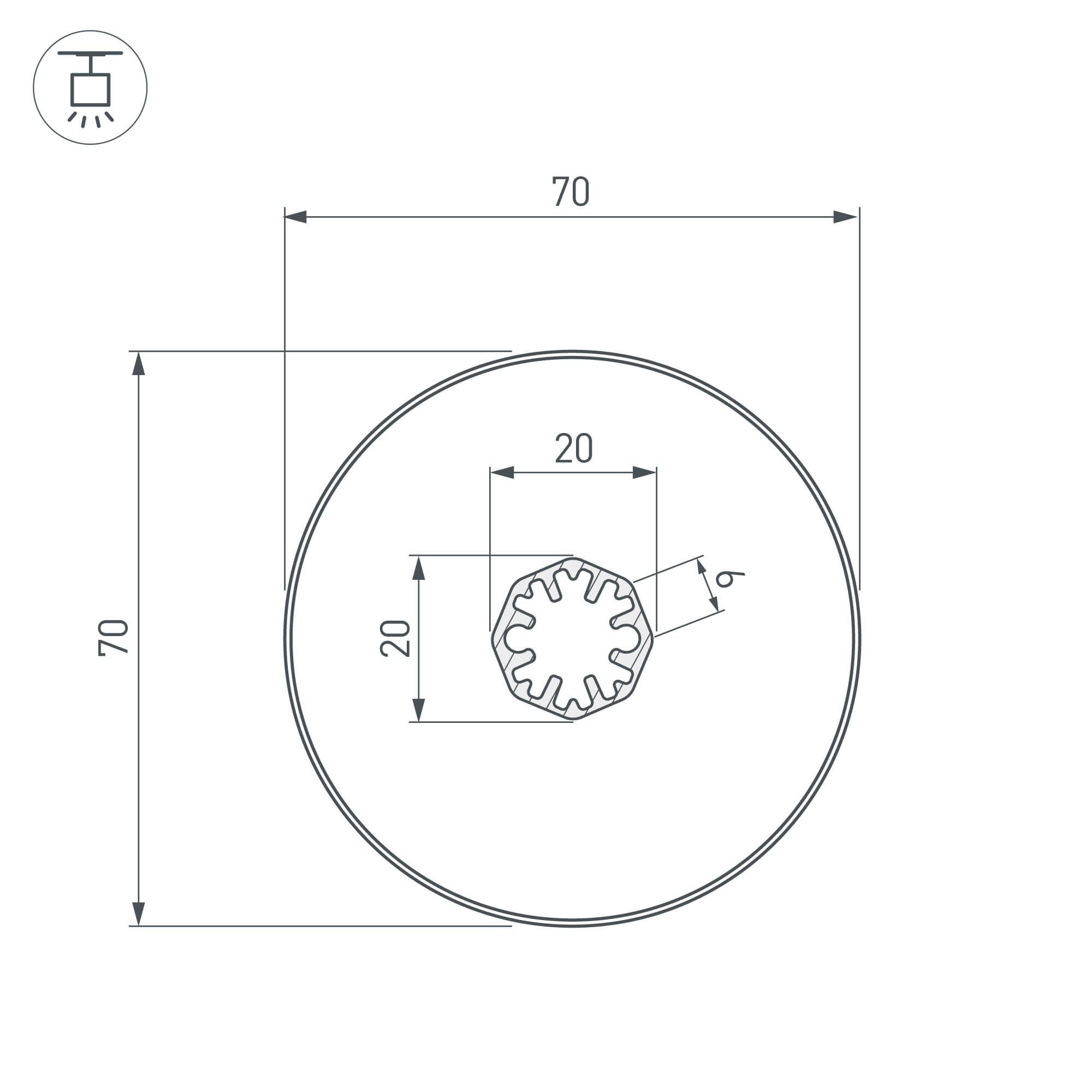 Встраиваемый профиль SL-ROUND-D70-360deg-2000 ANOD 037770
