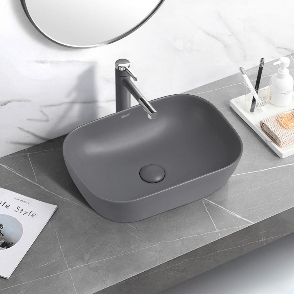 Раковина накладная ABBER Rechteck AC2200MG серая матовая купить в интернет-магазине светильников Mitris.kz!