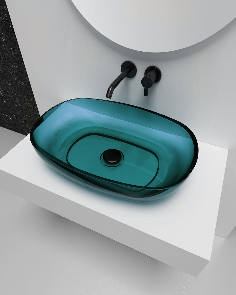 Раковина накладная прозрачная ABBER Kristall AT2805Aquamarin бирюзовая купить в интернет-магазине светильников Mitris.kz!