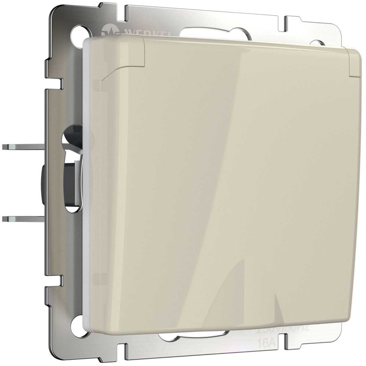 Розетка влагозащищенная с заземдением с защитной крышкой и шторками Werkel слоновая кость W1171203 4690389155765 купить в интернет-магазине светильников Mitris.kz!