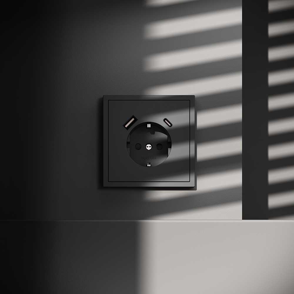 Розетка встраиваемая Voltum S70 с заземлением и защитными шторками, 16А, с USB, A+С, (графит) VLS040507 купить в интернет-магазине светильников Mitris.kz!