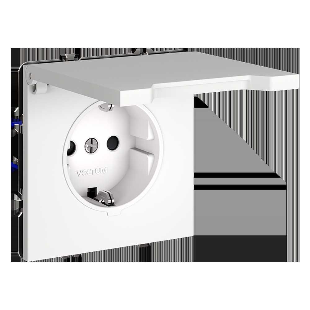Розетка встраиваемая Voltum S70 с заземлением, защитными шторками и крышкой 16А, (белый матовый) VLS040302