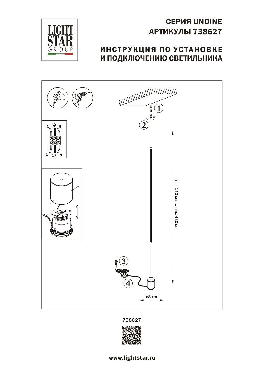 Торшер Lightstar Undine 738627 купить в интернет-магазине светильников Mitris.kz!
