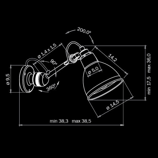 Площадь освещения, м2: