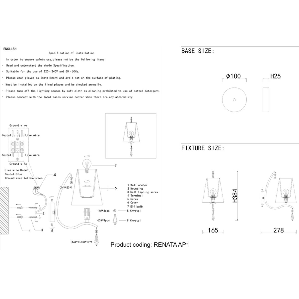 Бра Crystal Lux Renata AP1 Gold купить в интернет-магазине светильников Mitris.kz!