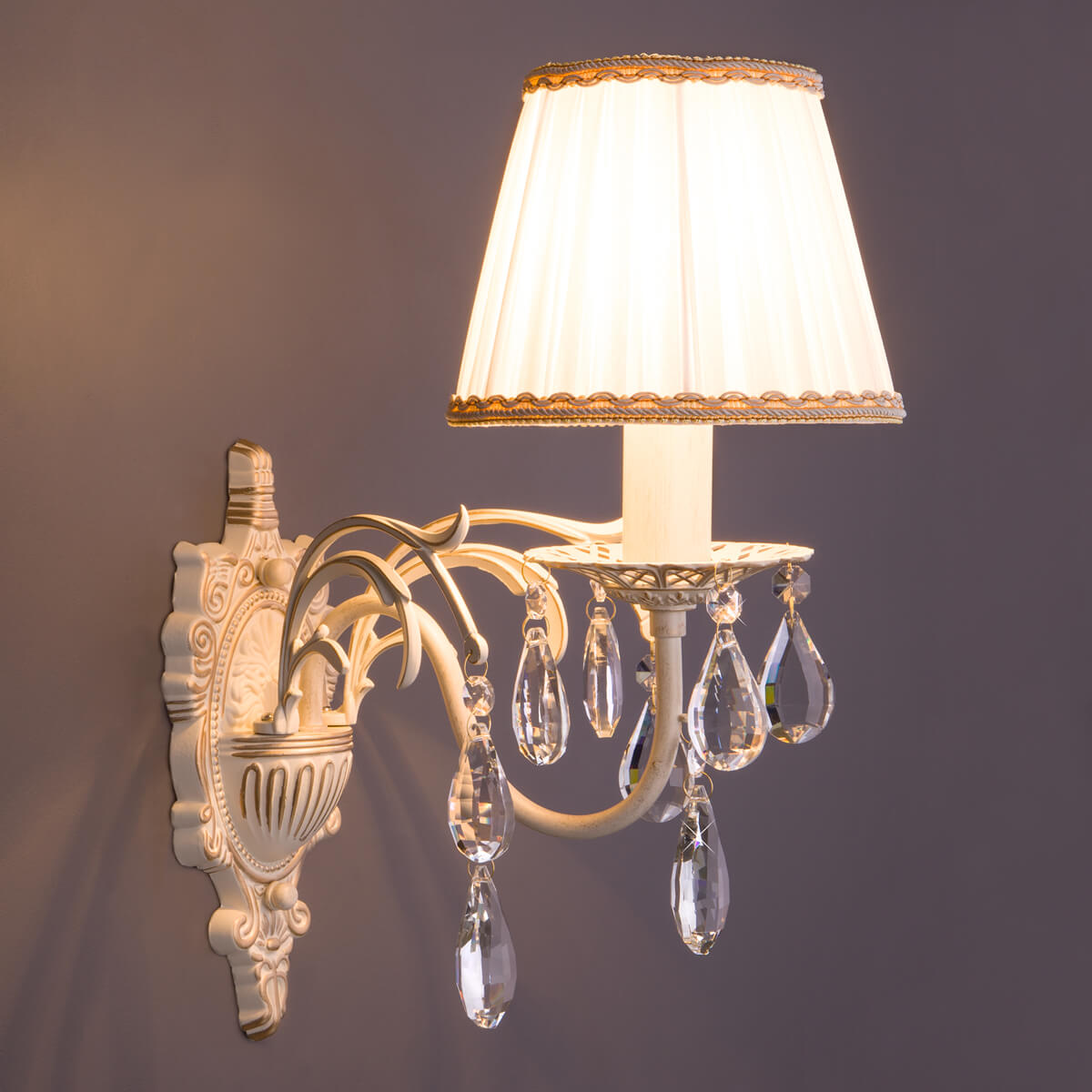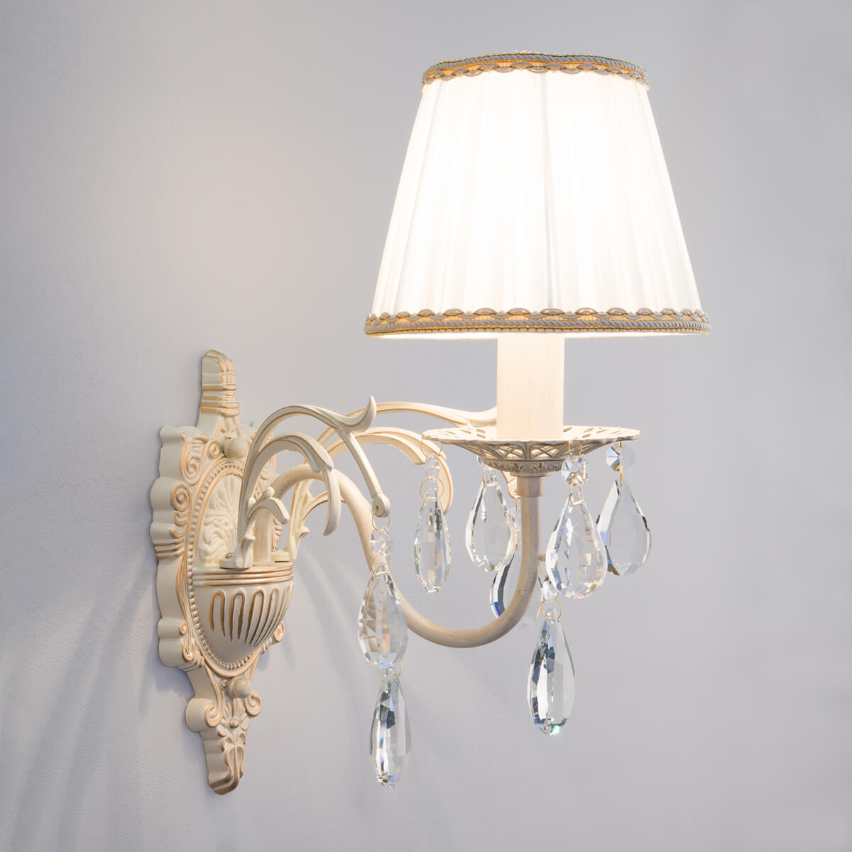 Бра Eurosvet 3637/1 белый с золотом/прозрачный хрусталь Strotskis купить в интернет-магазине светильников Mitris.kz!