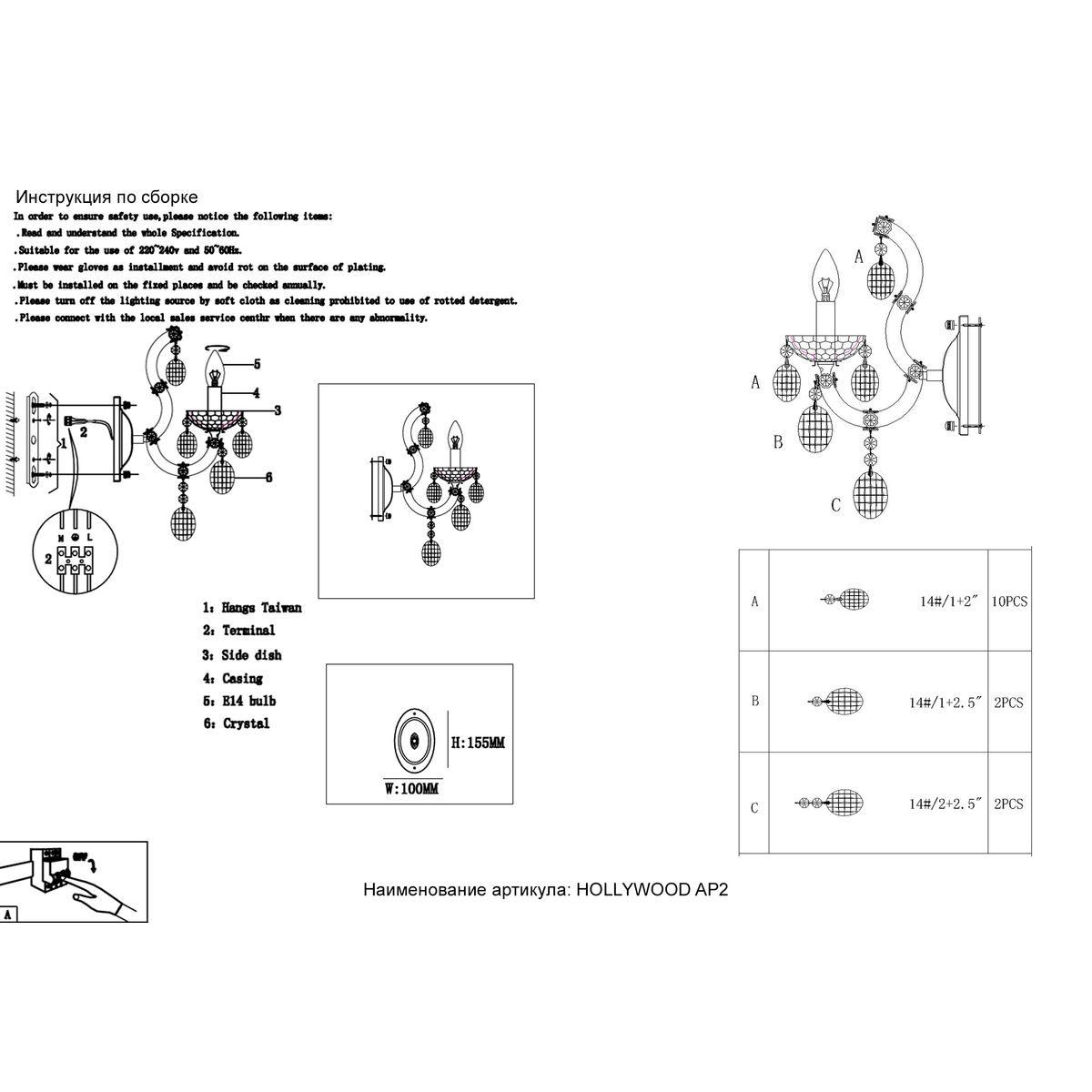 Бра Crystal Lux Hollywood AP2 Chrome купить в интернет-магазине светильников Mitris.kz!