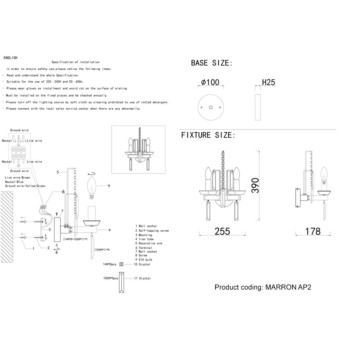 Бра Crystal Lux Marron AP2 Brass купить в интернет-магазине светильников Mitris.kz!