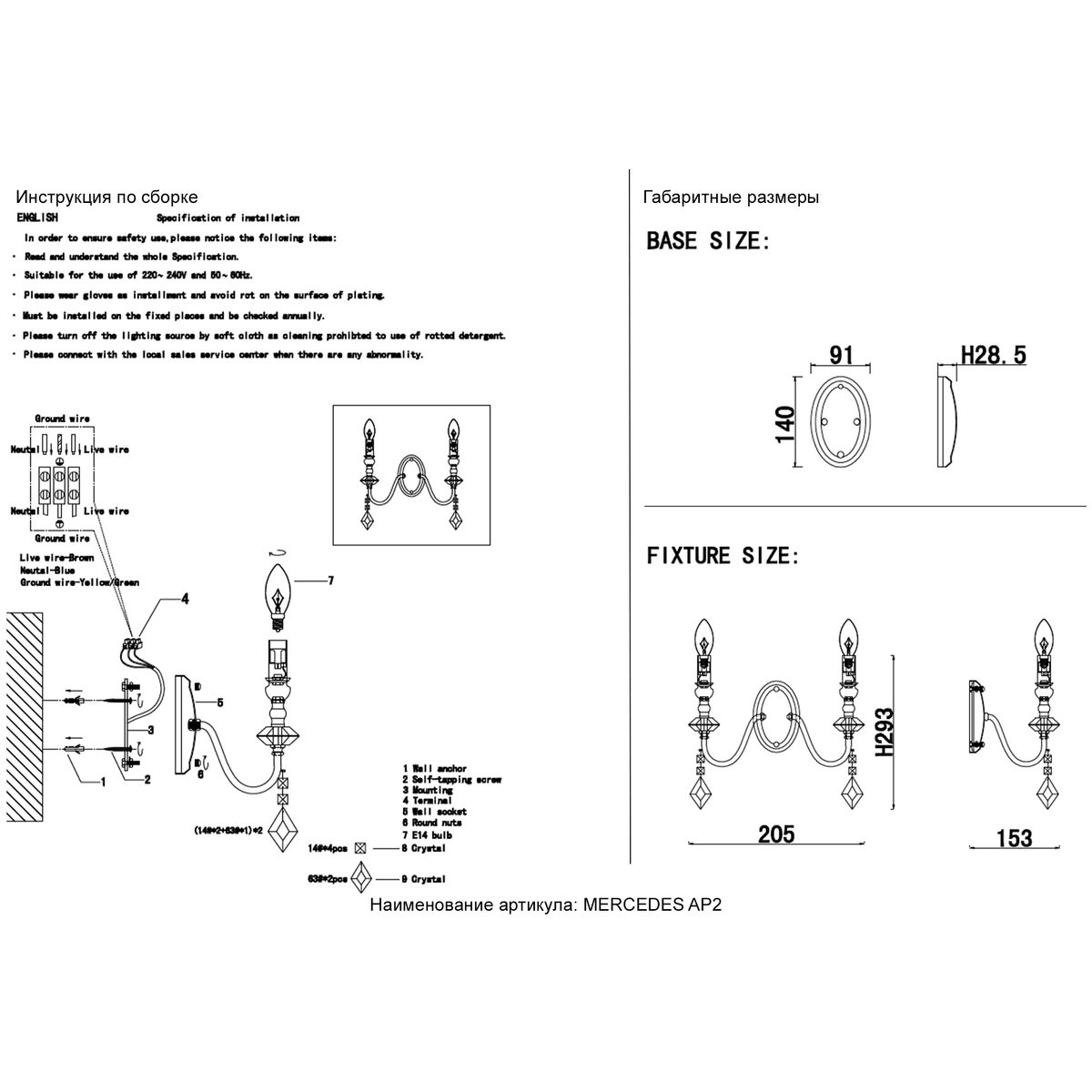 Бра Crystal Lux MERCEDES AP2 CHROME/SMOKE купить в интернет-магазине светильников Mitris.kz!
