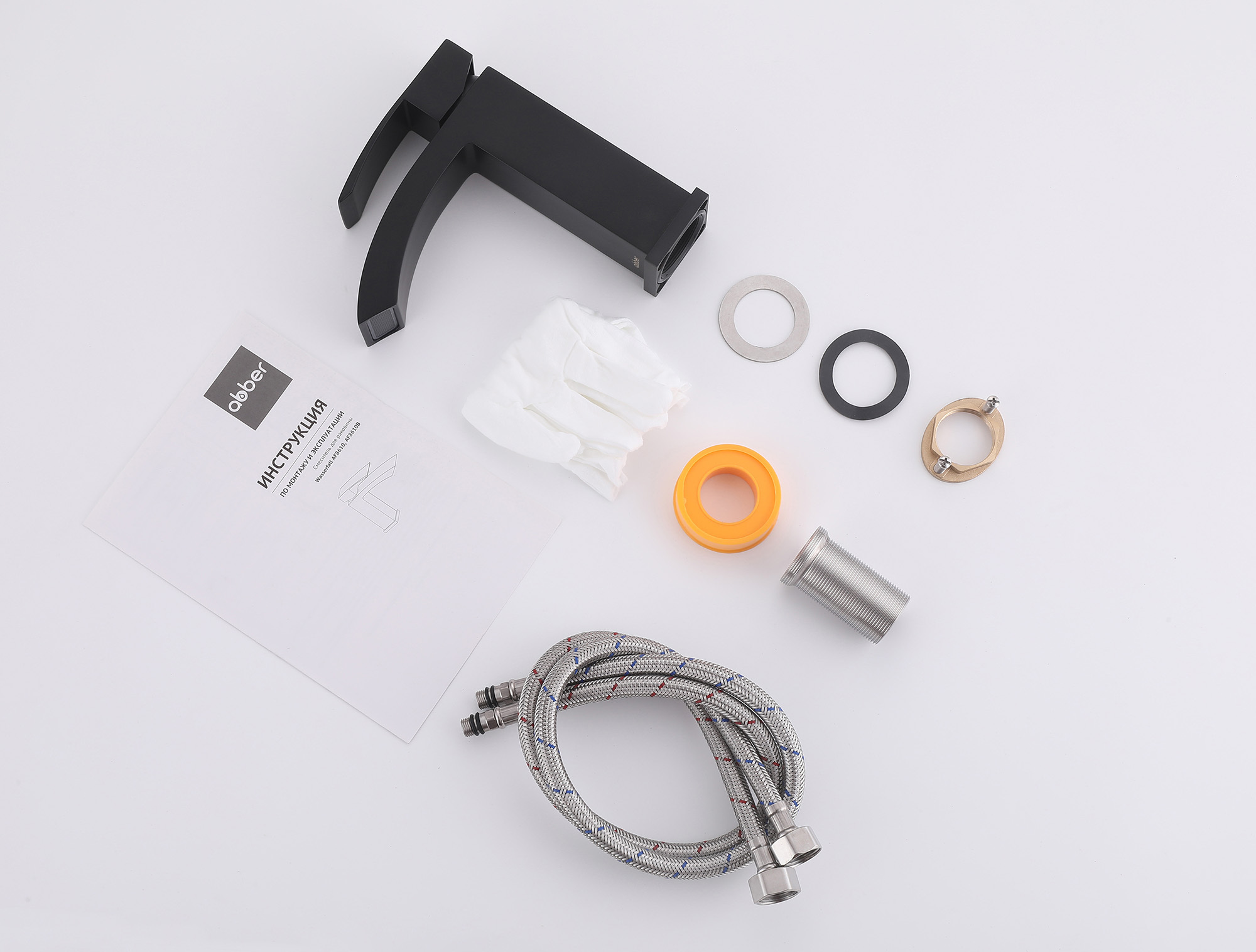 Смеситель ABBER Wasserfall AF8610B для раковины, черный матовый купить в интернет-магазине светильников Mitris.kz!