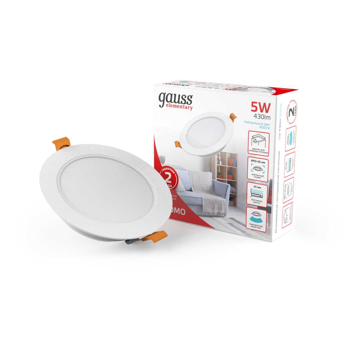 Встраиваемый светильник Gauss Elementary Downlight 9100420205 купить в интернет-магазине светильников Mitris.kz!