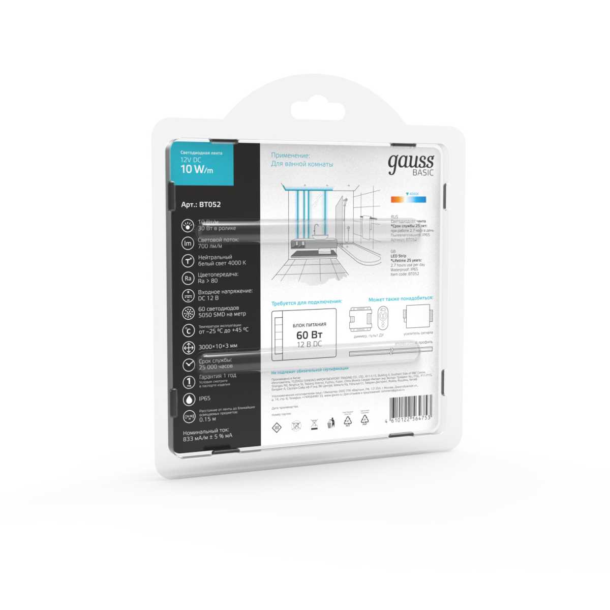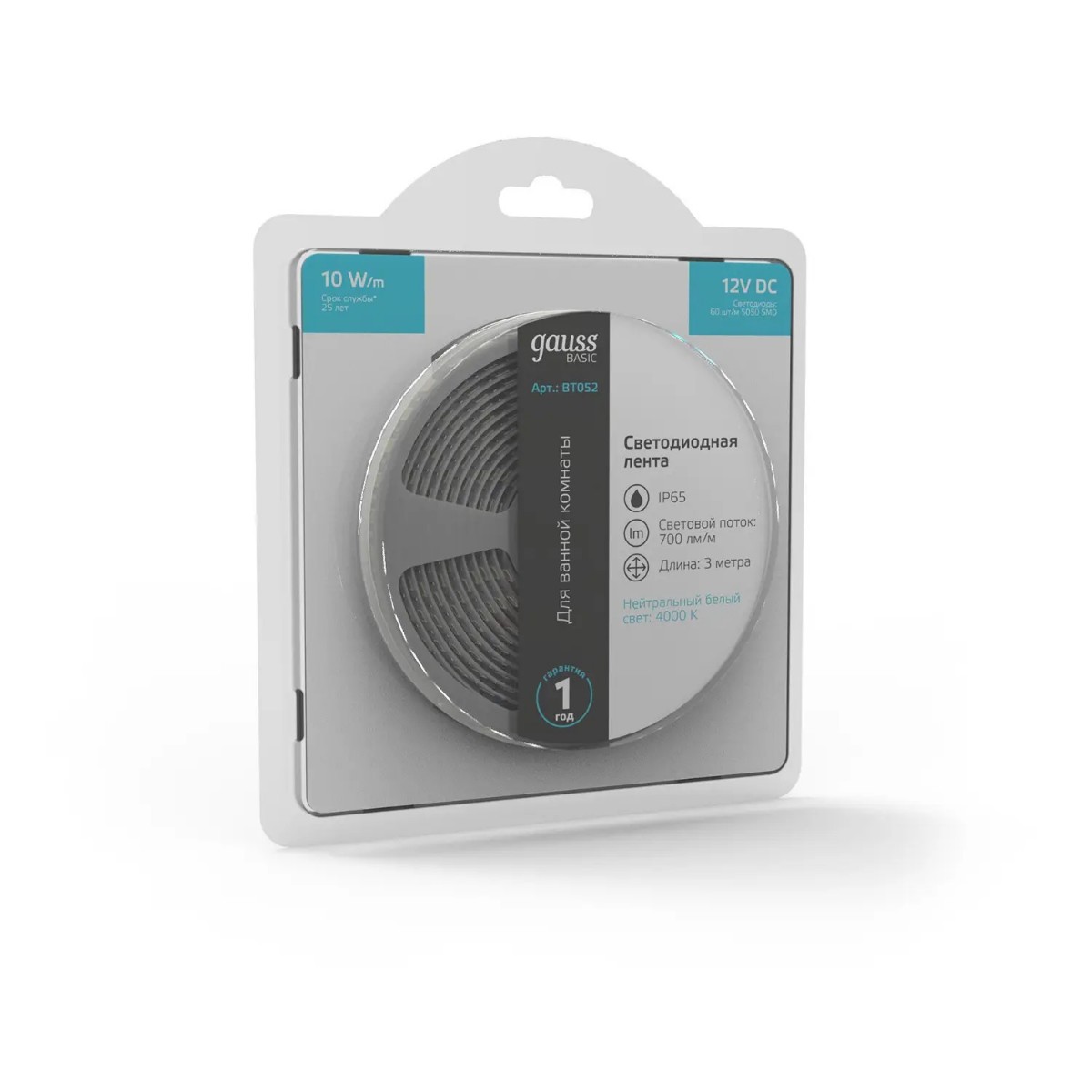 Светодиодная лента Gauss 10W/m 60LED/m 5050SMD нейтральный белый 3M BT052 купить в интернет-магазине светильников Mitris.kz!