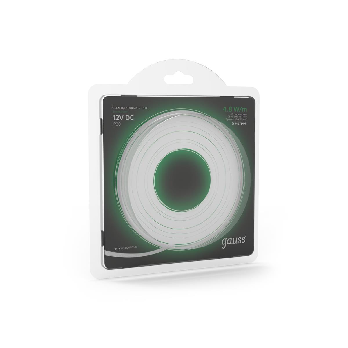 Светодиодная лента Gauss 4,8W/m 60LED/m 2835SMD зеленый 5M 312000605 купить в интернет-магазине светильников Mitris.kz!