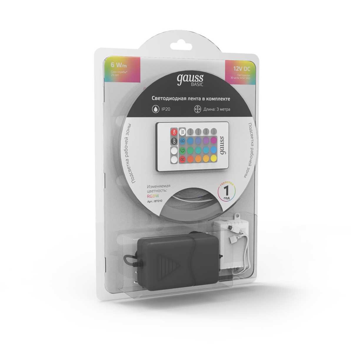 Светодиодная лента Gauss 6W/m 30LED/m 5050SMD разноцветный 3M BT010 купить в интернет-магазине светильников Mitris.kz!