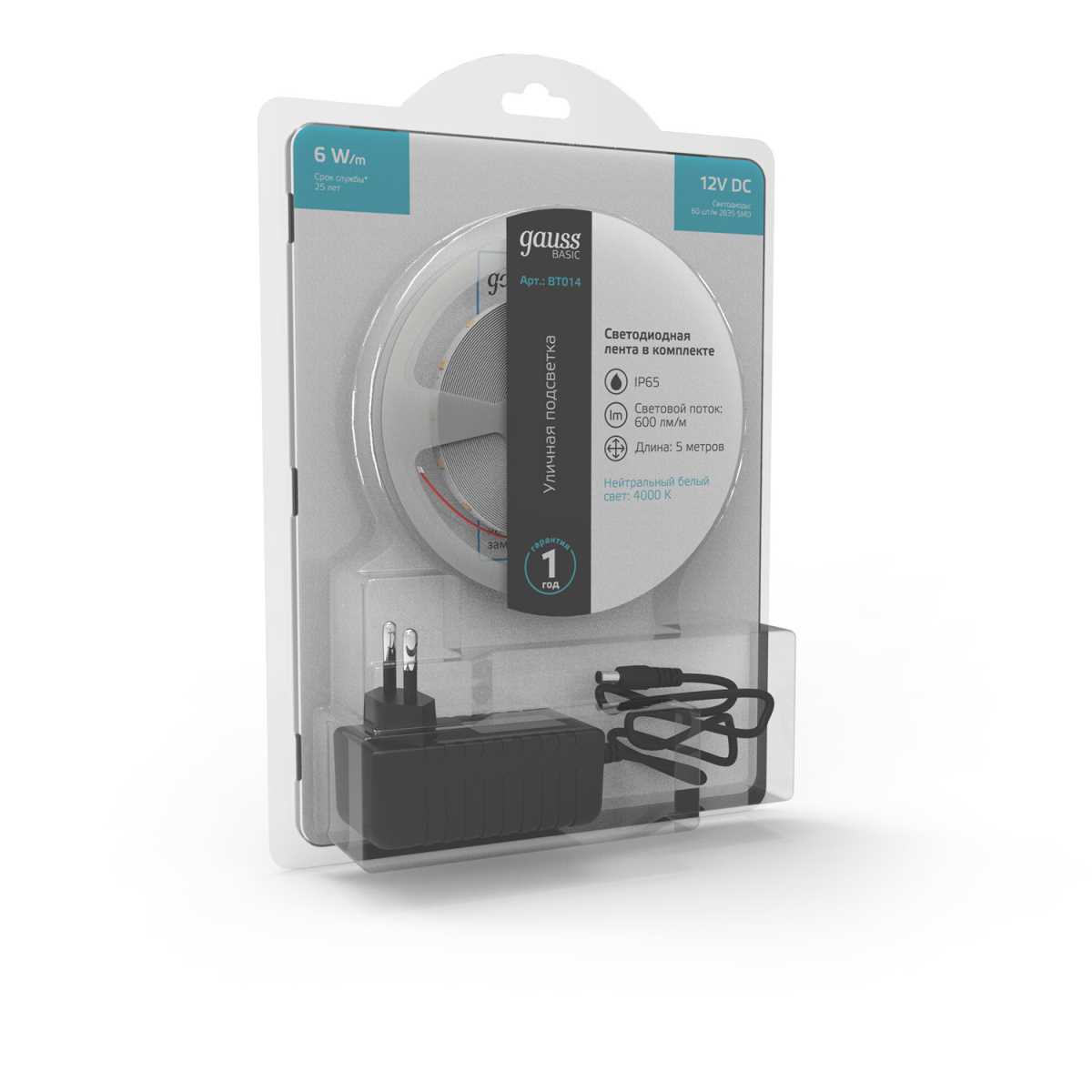 Светодиодная лента Gauss 6W/m 60LED/m 2835SMD нейтральный белый 5M BT014 купить в интернет-магазине светильников Mitris.kz!