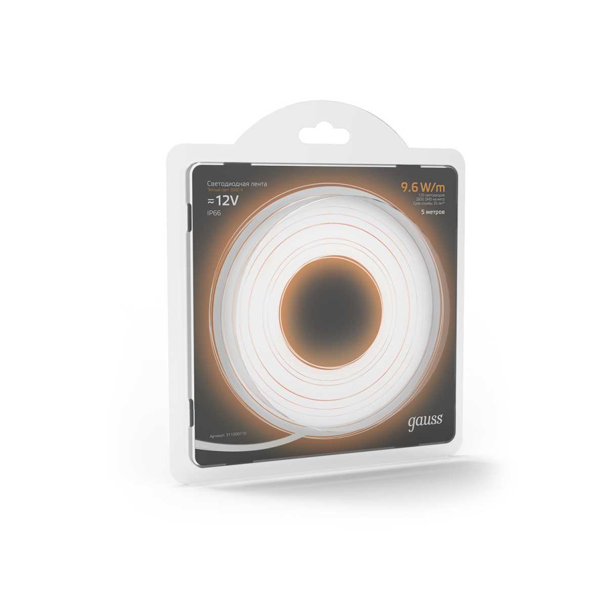 Светодиодная влагозащищенная лента Gauss 9,6W/m 120LED/m 2835SMD теплый белый 5M 311000110 купить в интернет-магазине светильников Mitris.kz!