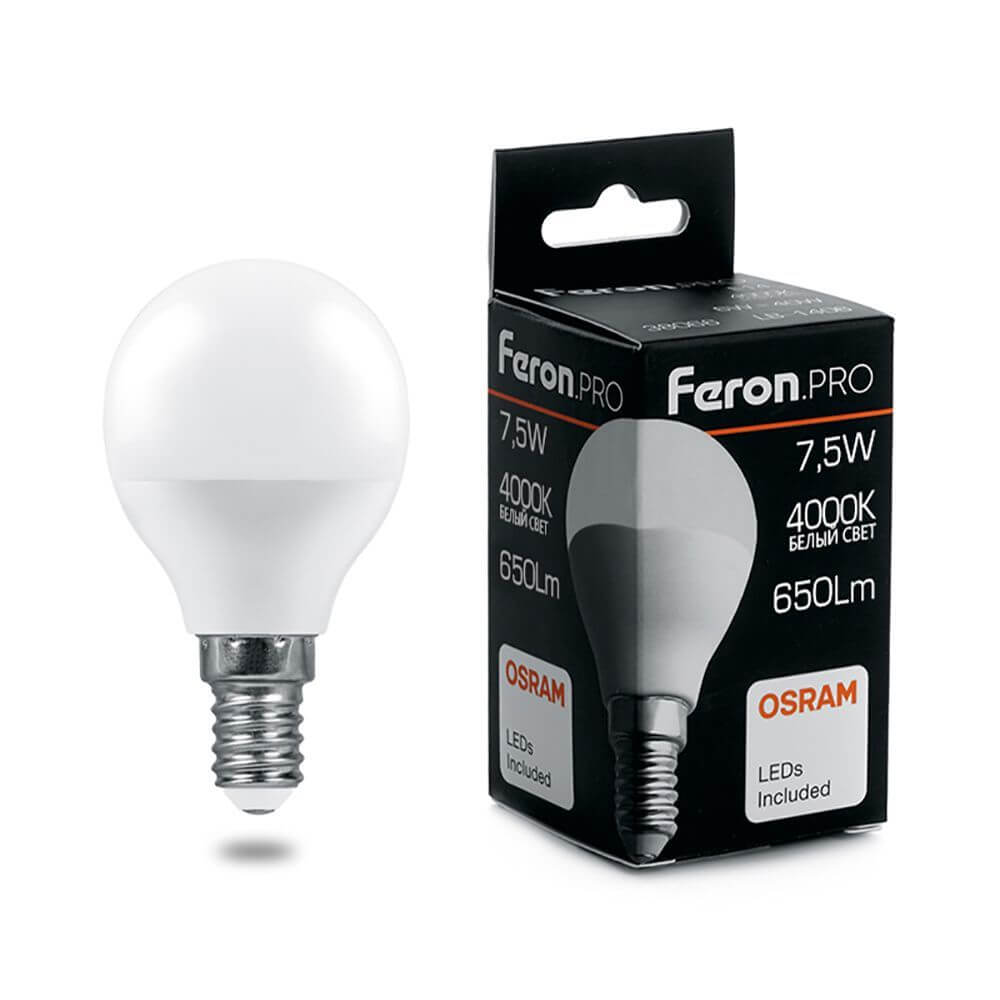 Лампа светодиодная Feron E14 7,5W 4000K матовая LB-1407 38072 купить в интернет-магазине светильников Mitris.kz!