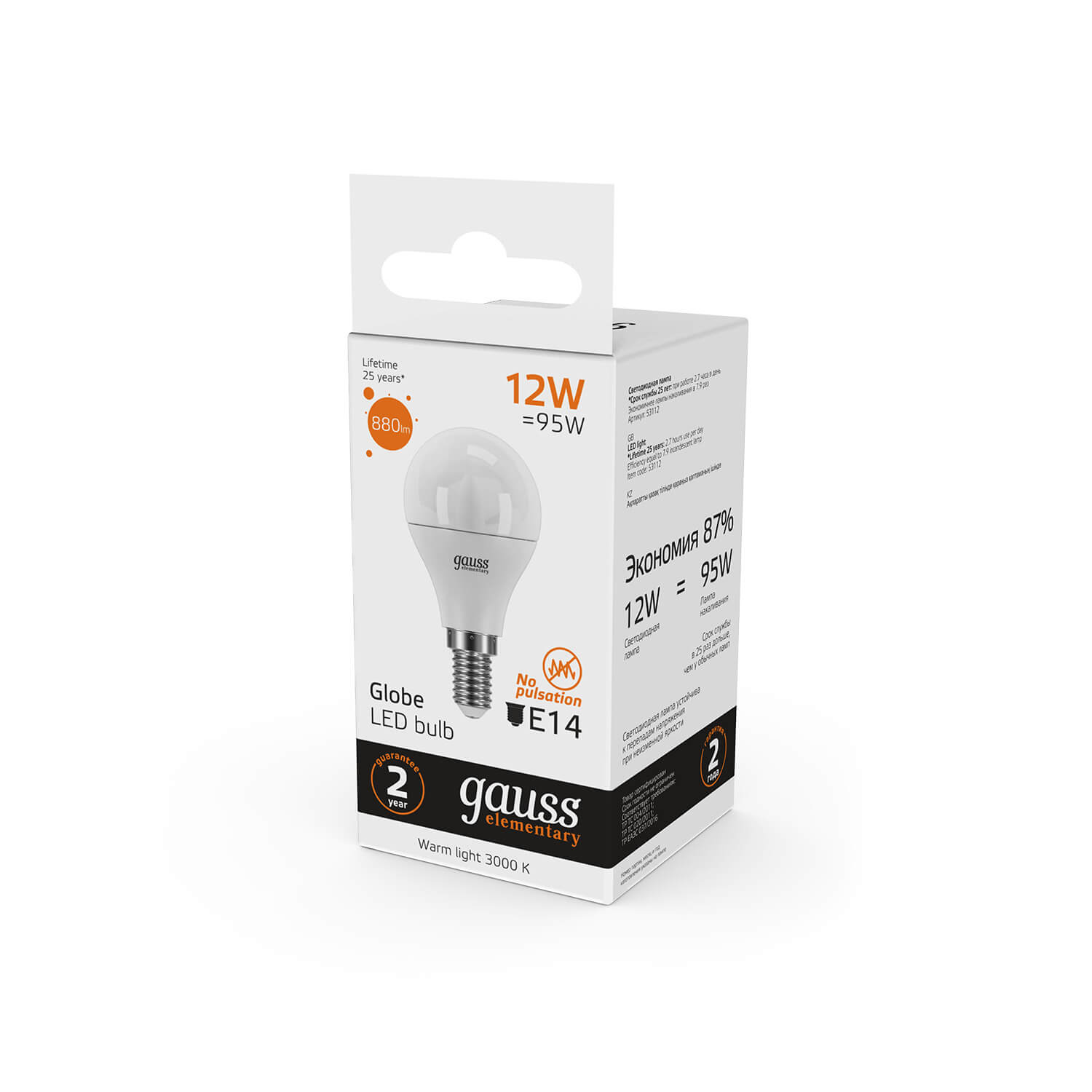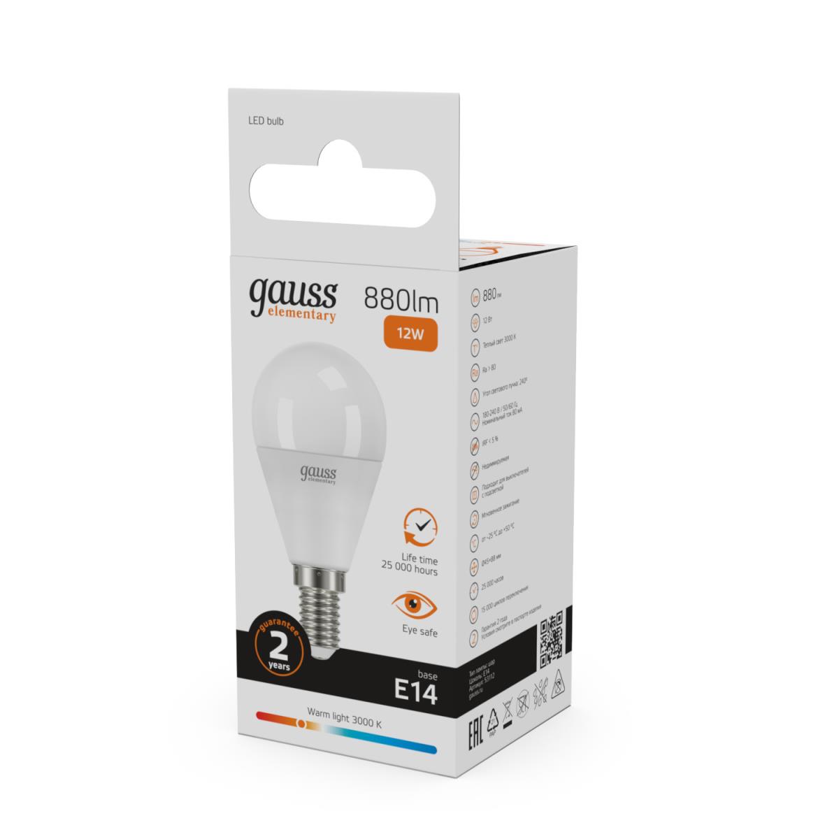 Лампа светодиодная Gauss E14 12W 3000K матовая 53112