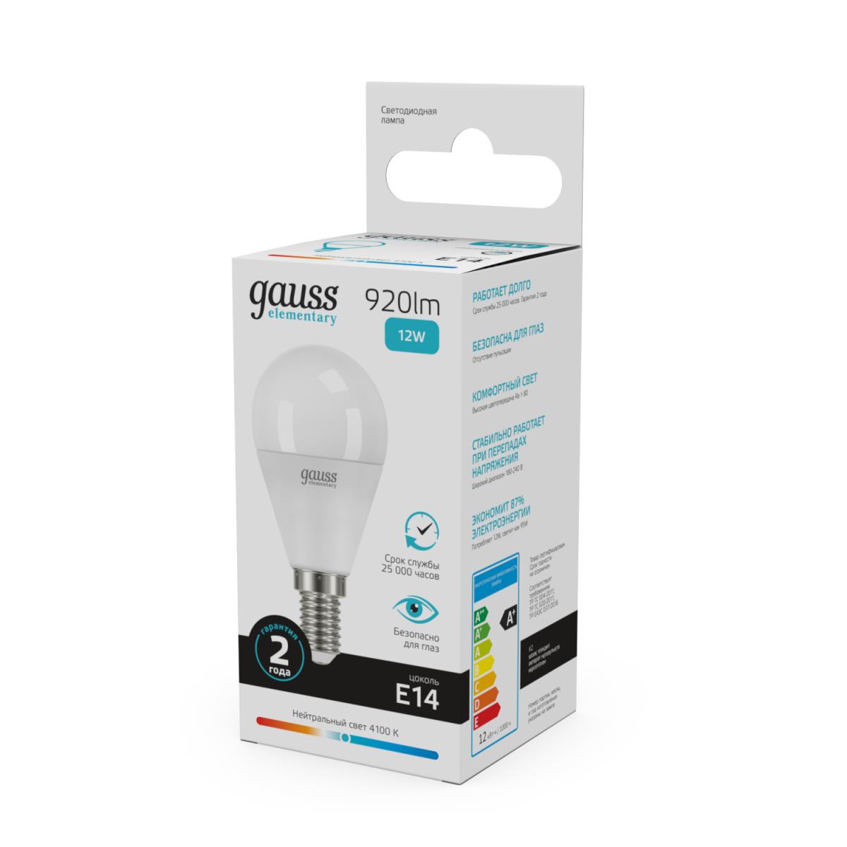 Лампа светодиодная Gauss E14 12W 4100K матовая 53122 купить в интернет-магазине светильников Mitris.kz!