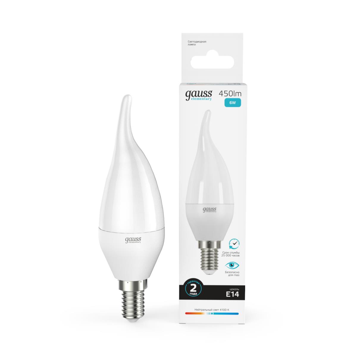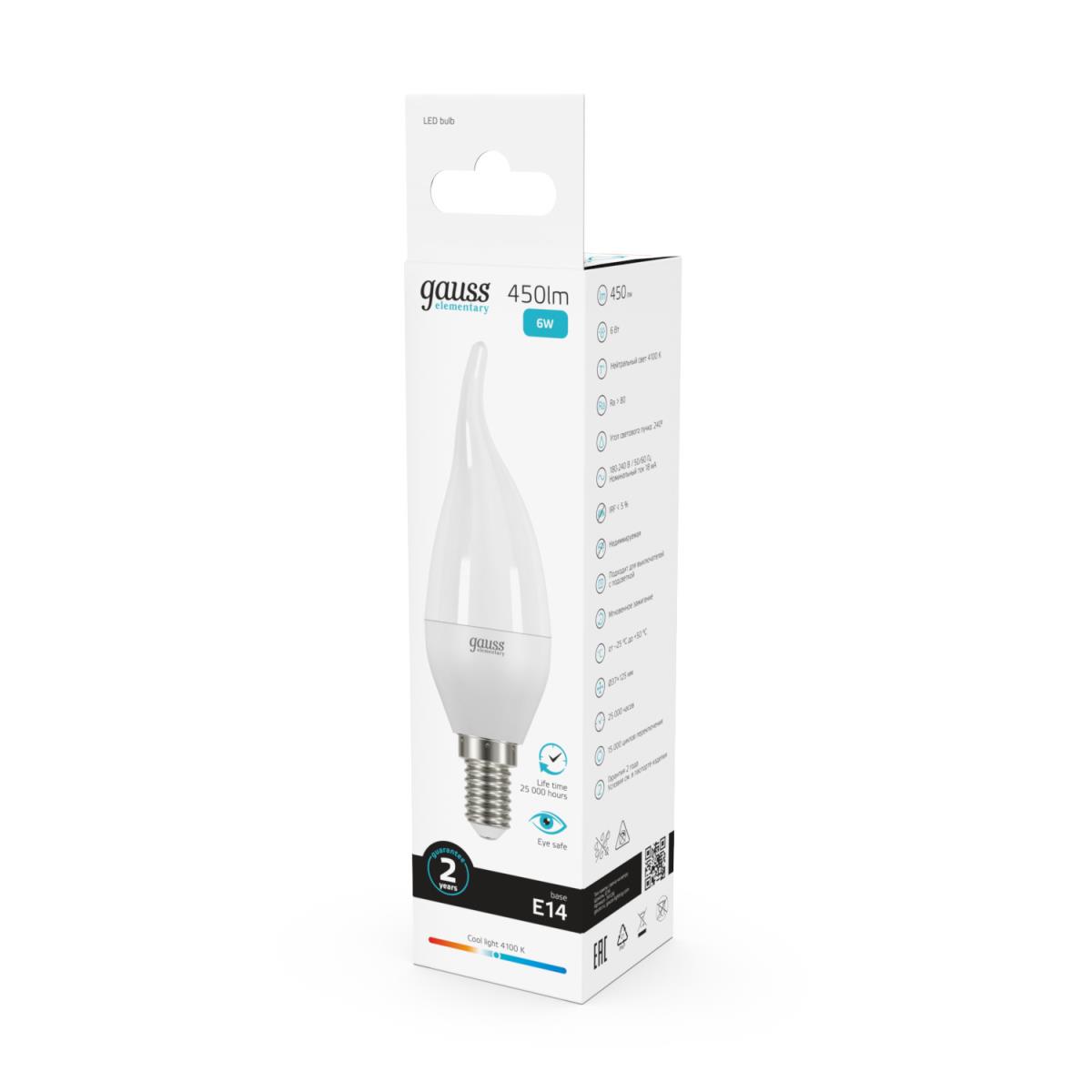Лампа светодиодная Gauss E14 6W 4100K матовая 34126 купить в интернет-магазине светильников Mitris.kz!