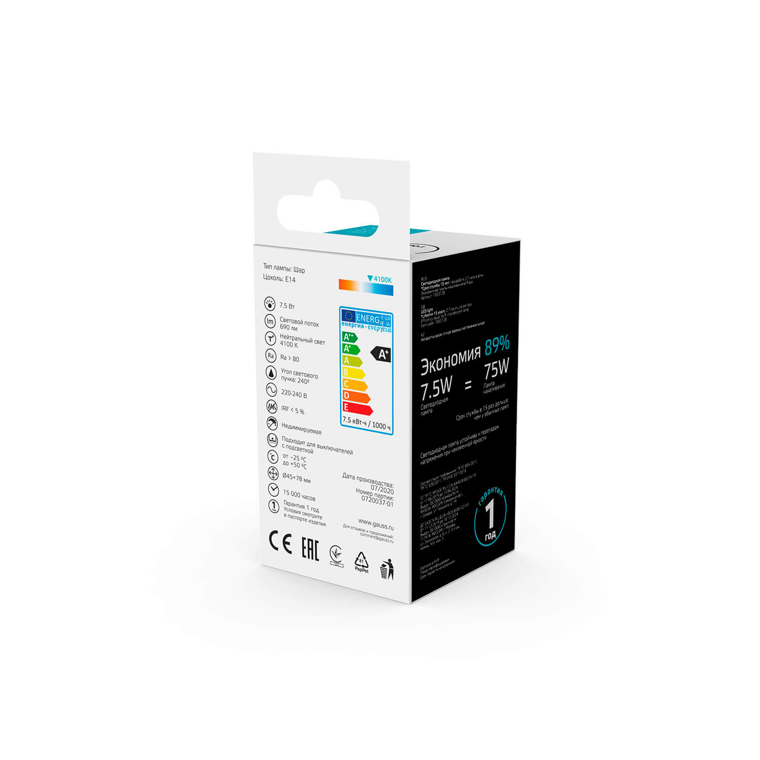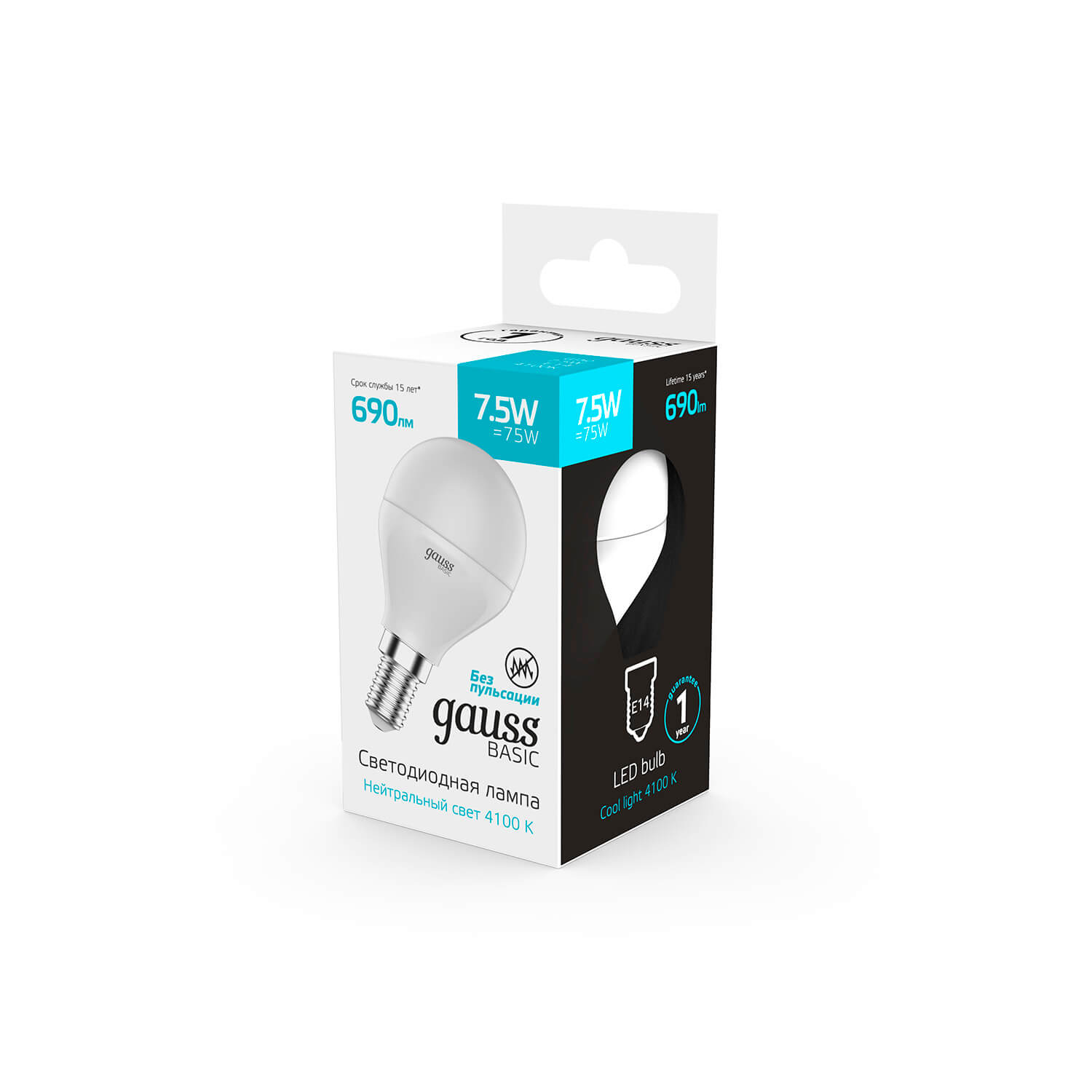 Лампа светодиодная Gauss E14 7,5W 4100К матовая 1053128 купить в интернет-магазине светильников Mitris.kz!