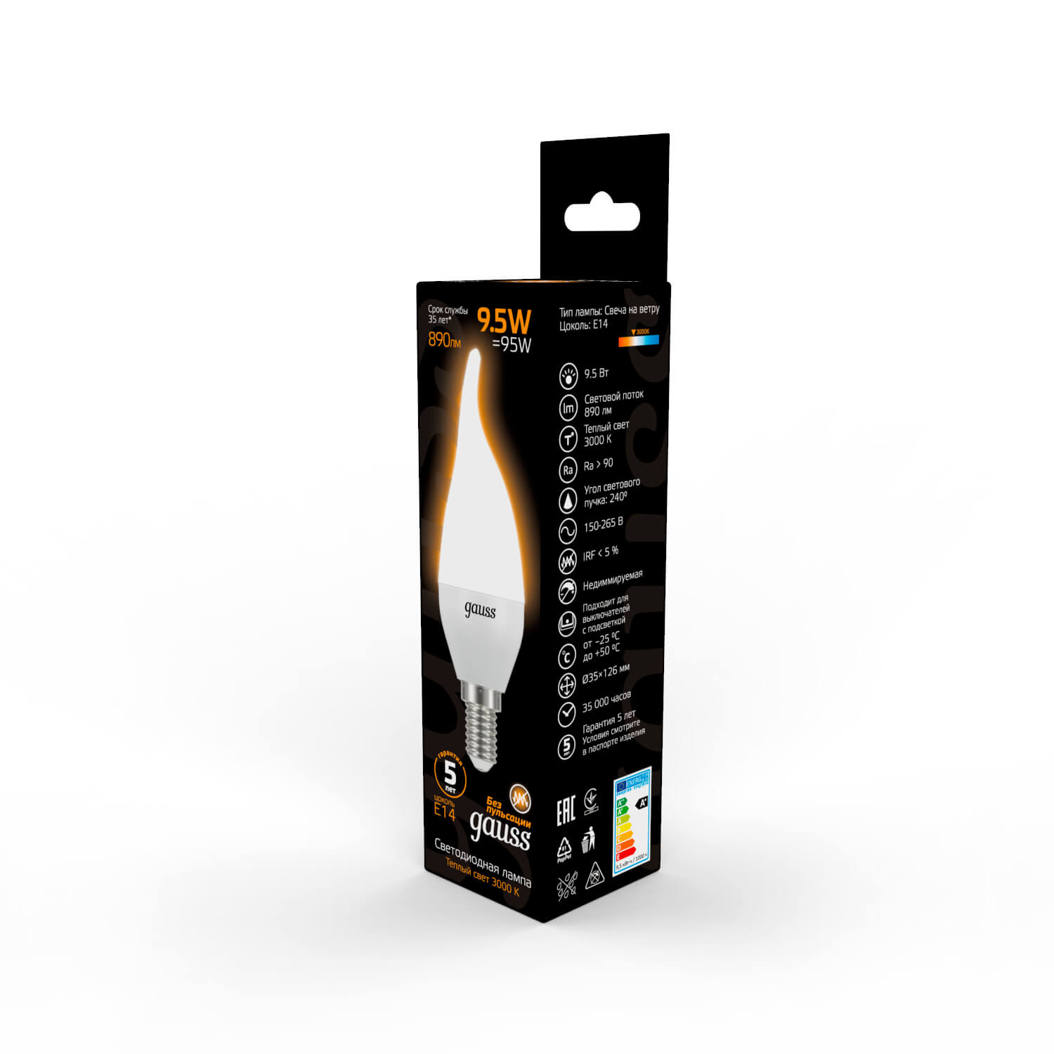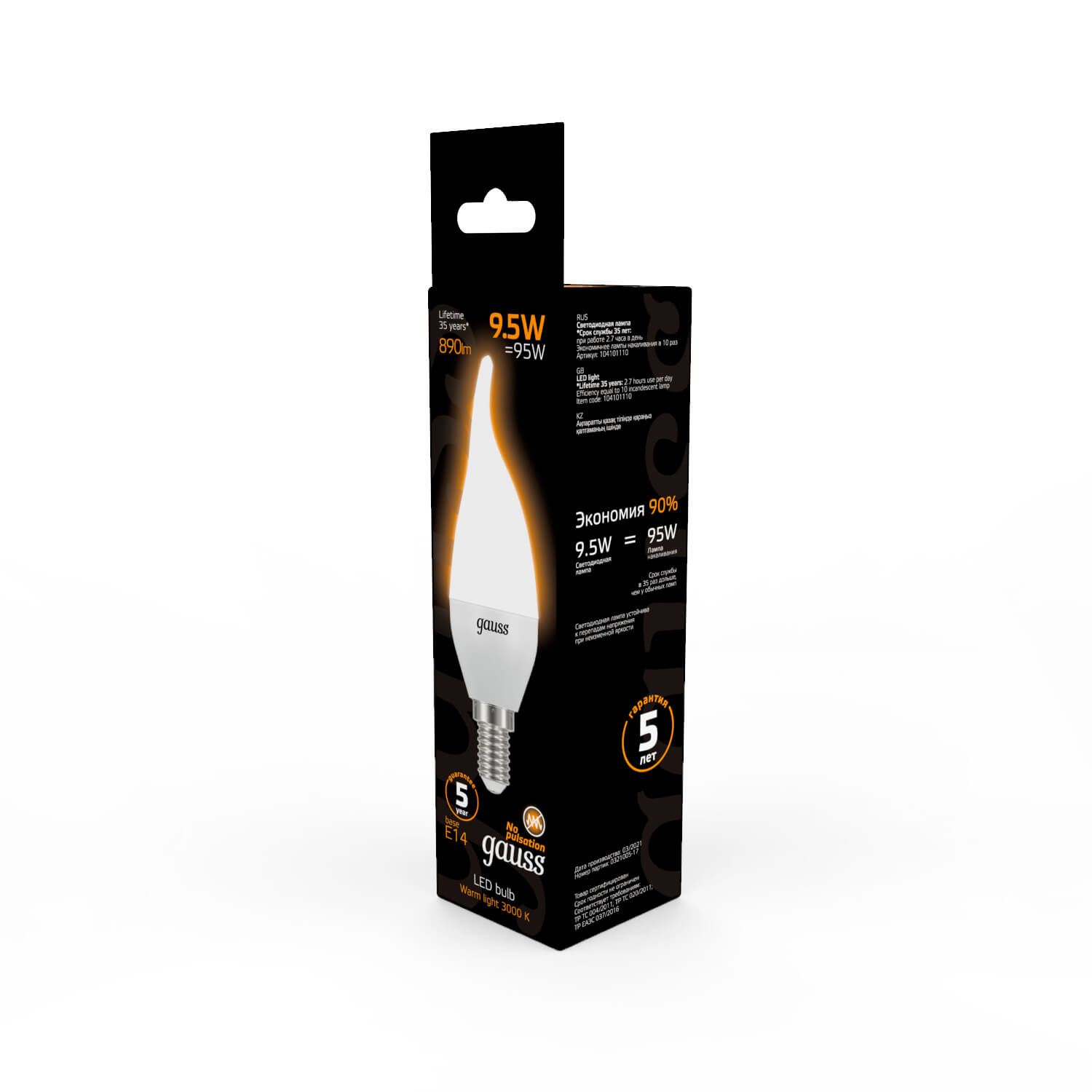 Лампа светодиодная Gauss E14 9.5W 3000K матовая 104101110 купить в интернет-магазине светильников Mitris.kz!