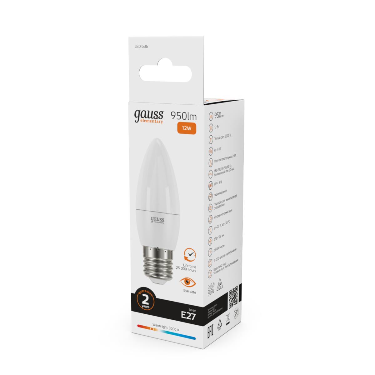 Лампа светодиодная Gauss E27 12W 3000K матовая 30212