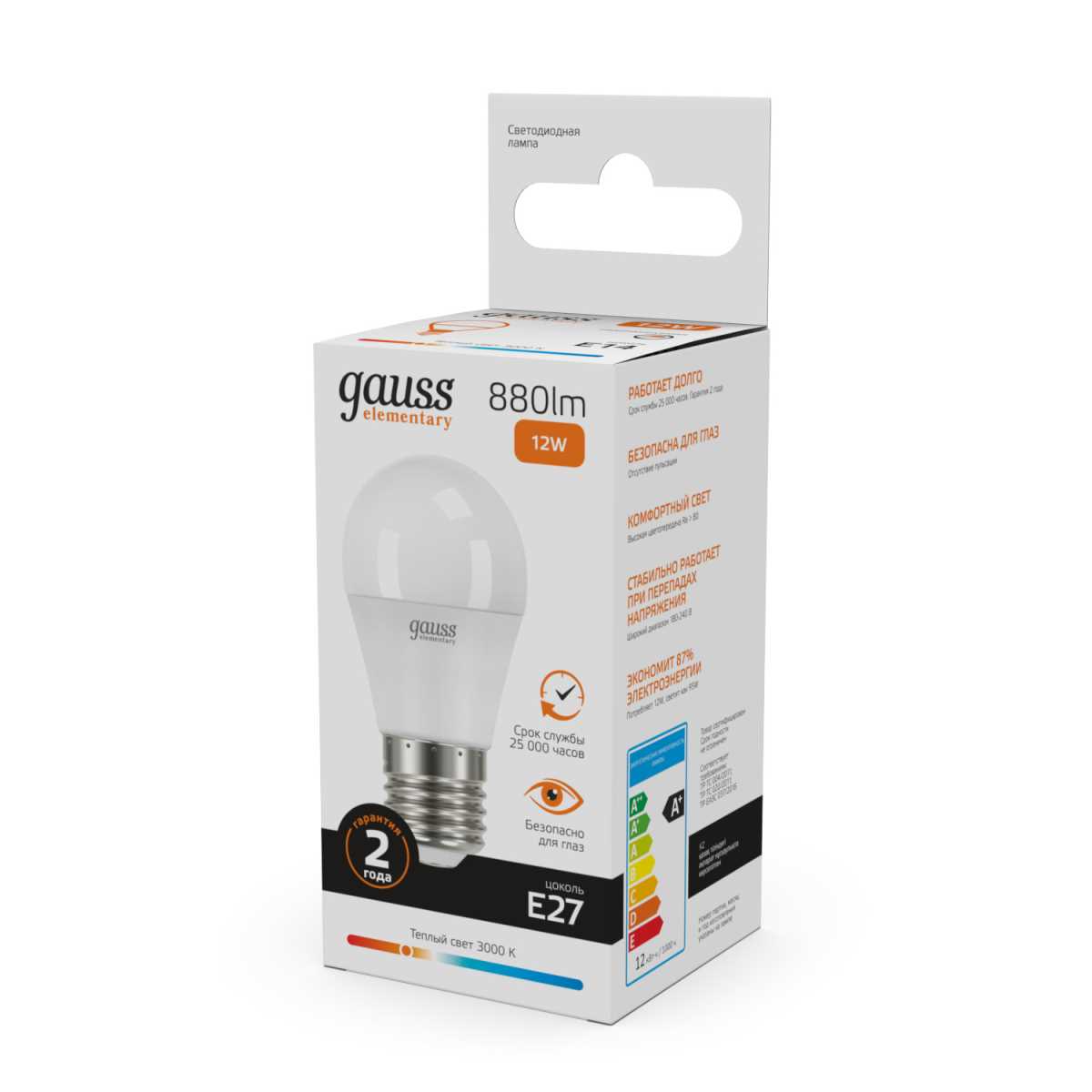 Лампа светодиодная Gauss E27 12W 3000K матовая 53212