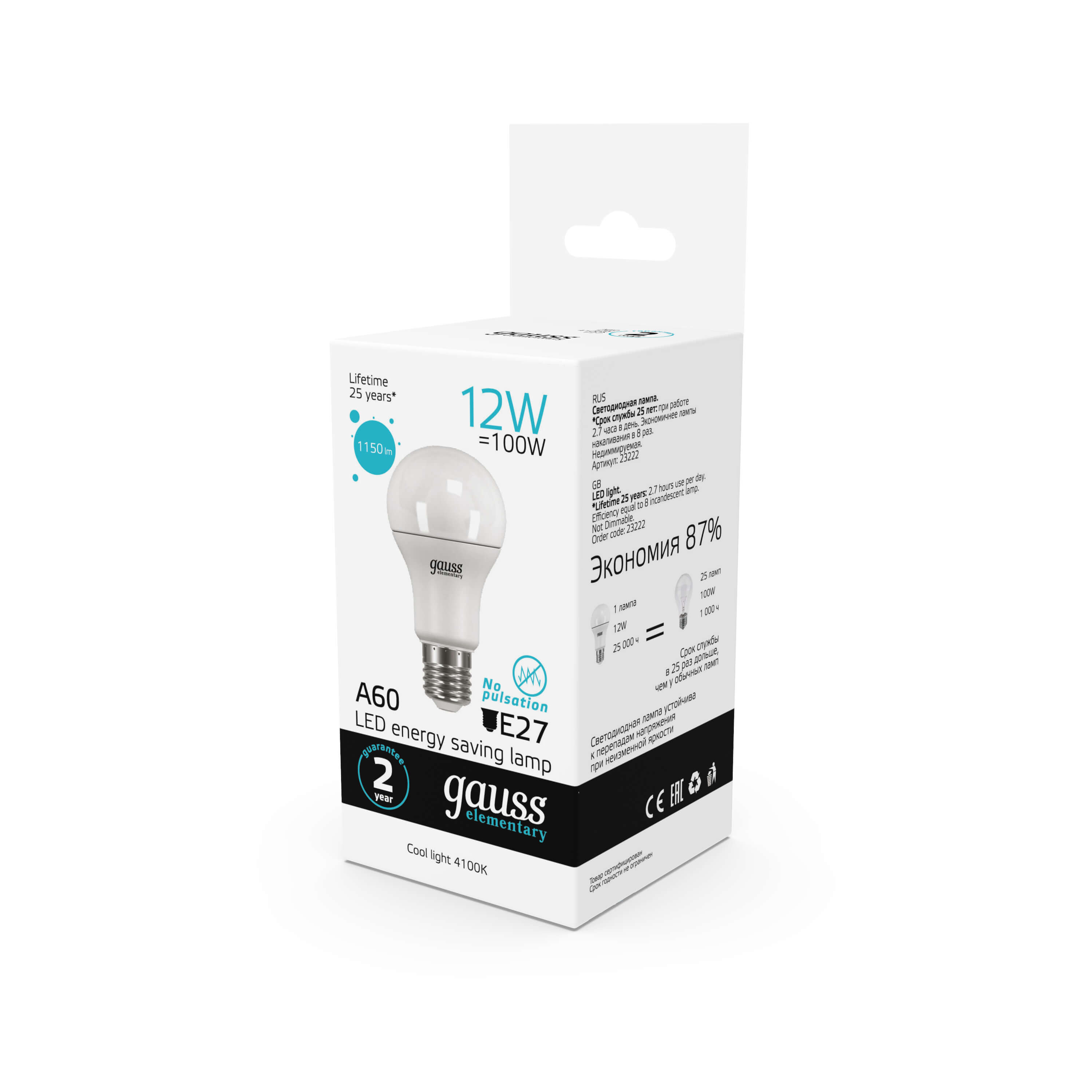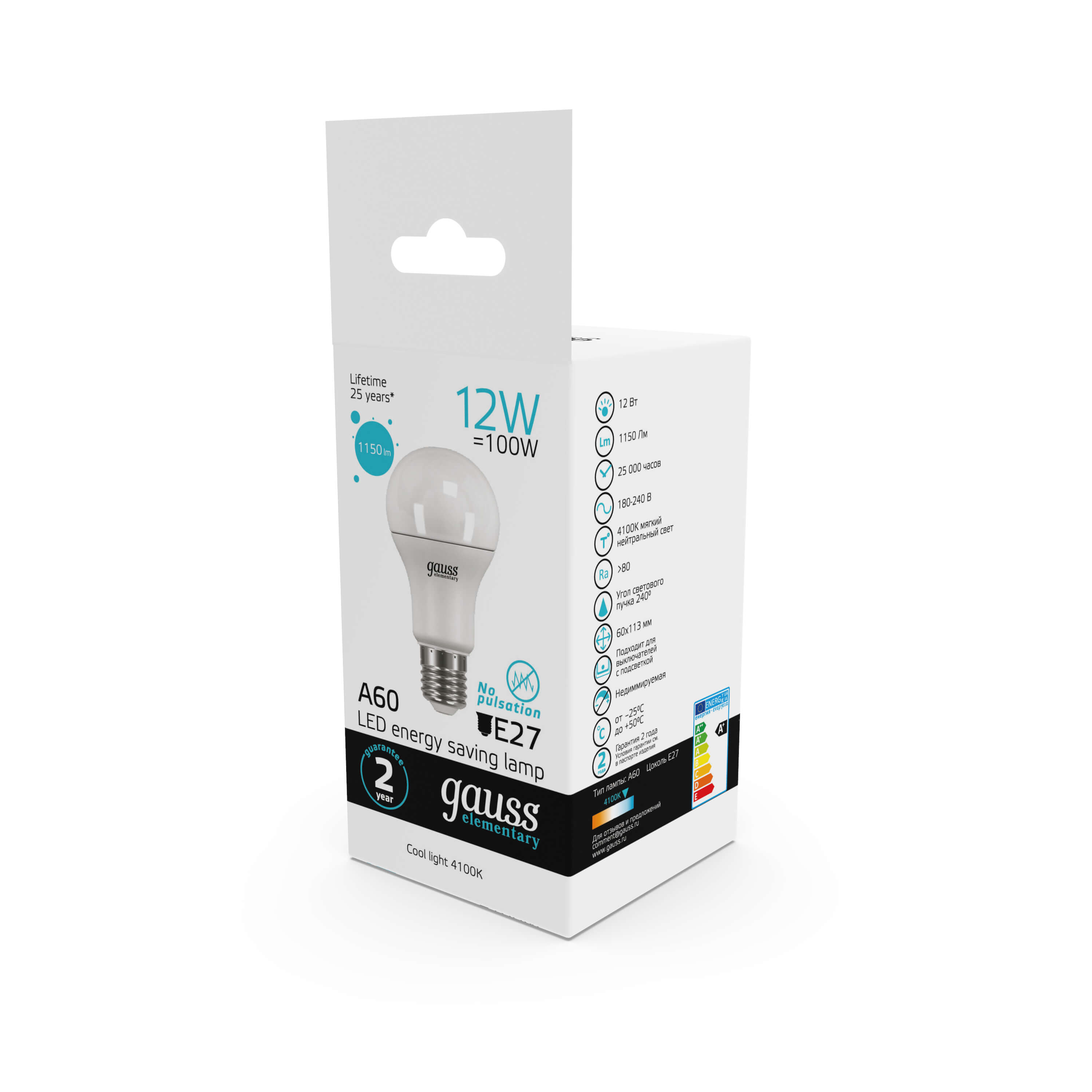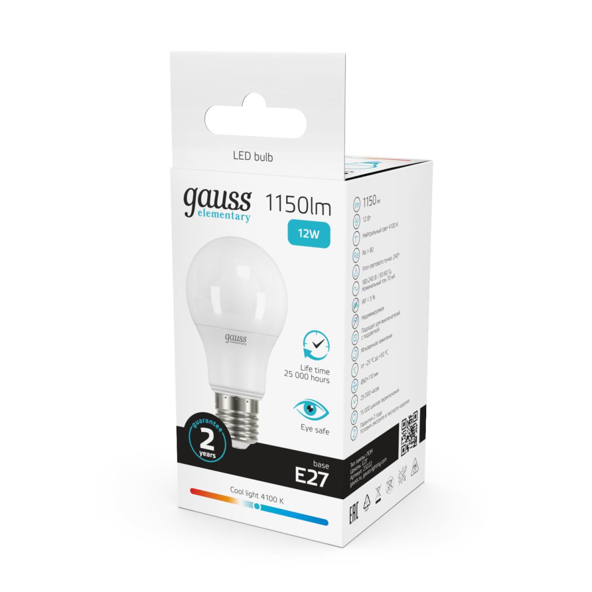 Лампа светодиодная Gauss E27 12W 4100K матовая 23222 купить в интернет-магазине светильников Mitris.kz!
