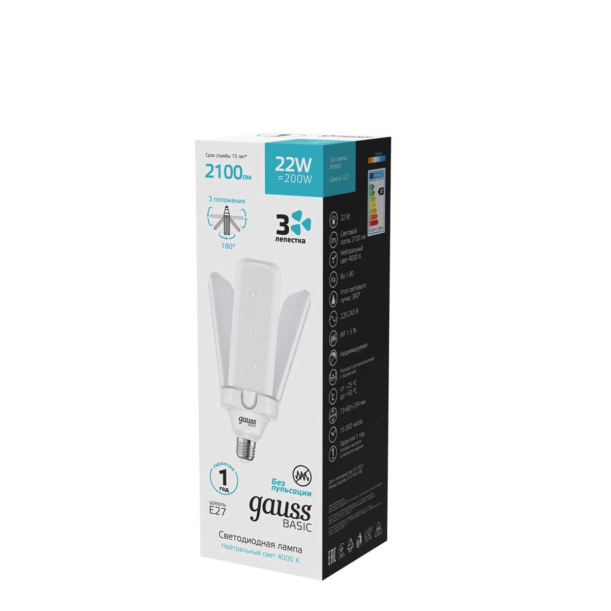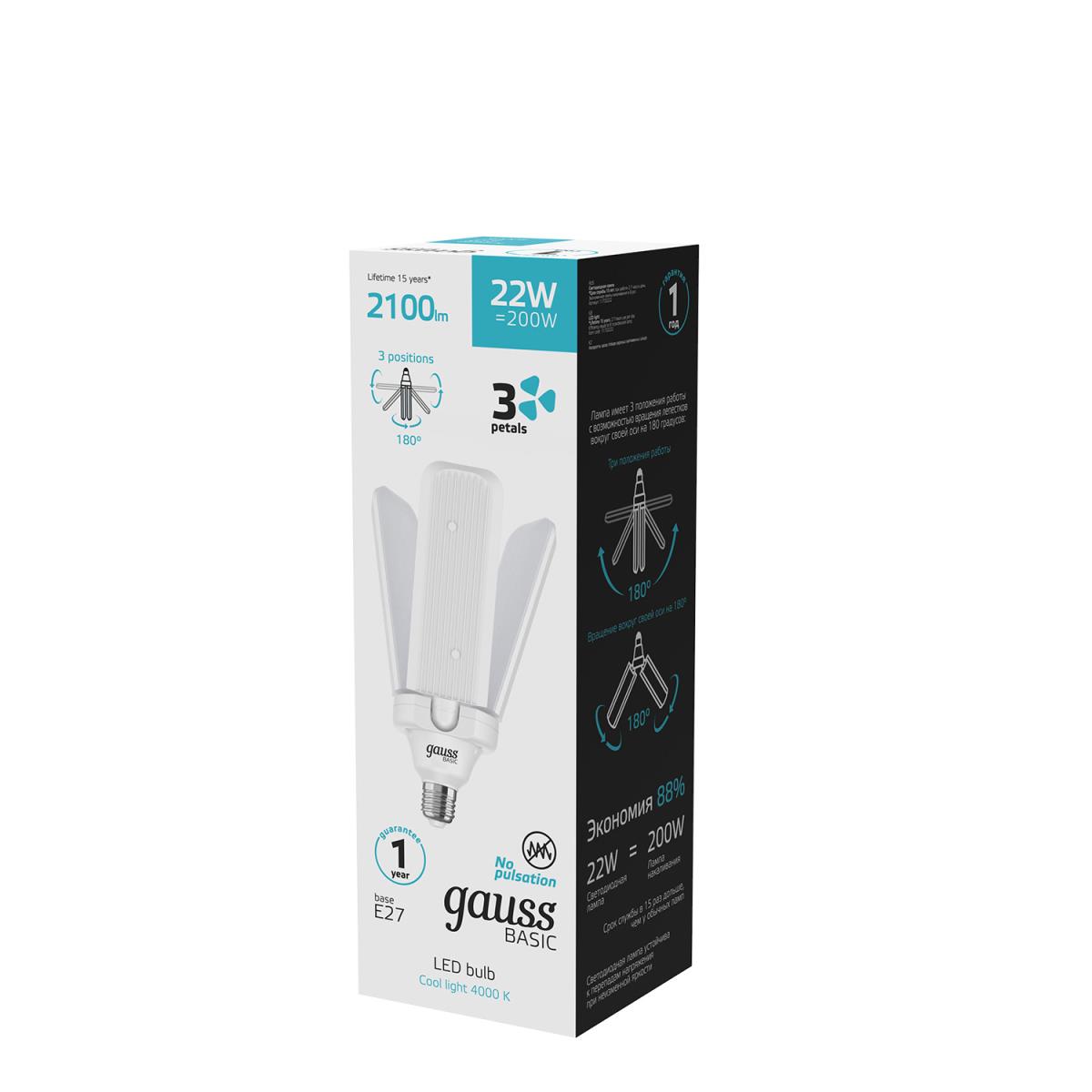 Лампа светодиодная Gauss E27 22W 4000K матовая 11732222 купить в интернет-магазине светильников Mitris.kz!