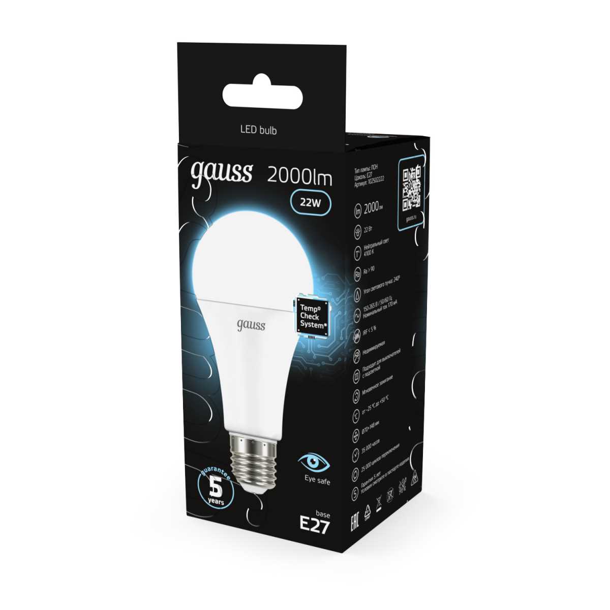 Лампа светодиодная Gauss E27 22W 4100К матовая 102502222 купить в интернет-магазине светильников Mitris.kz!