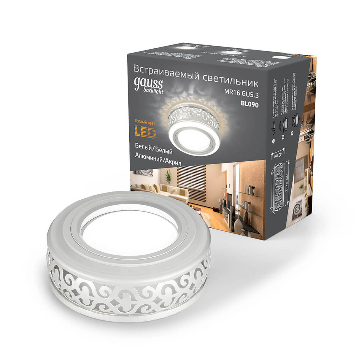 Встраиваемый светильник Gauss Backlight с подсветкой BL090 купить в интернет-магазине светильников Mitris.kz!