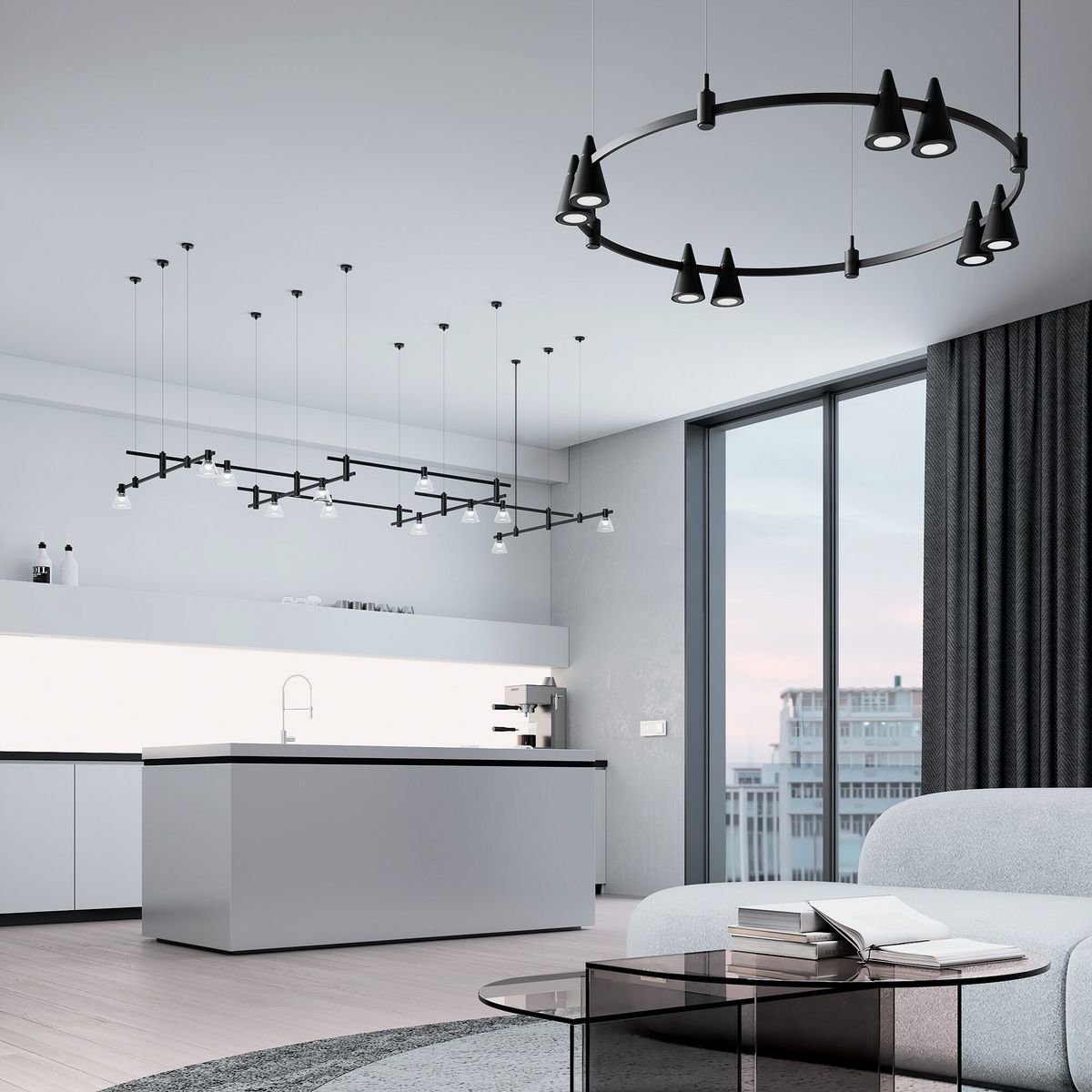 • Подвесные, потолочные люстры;