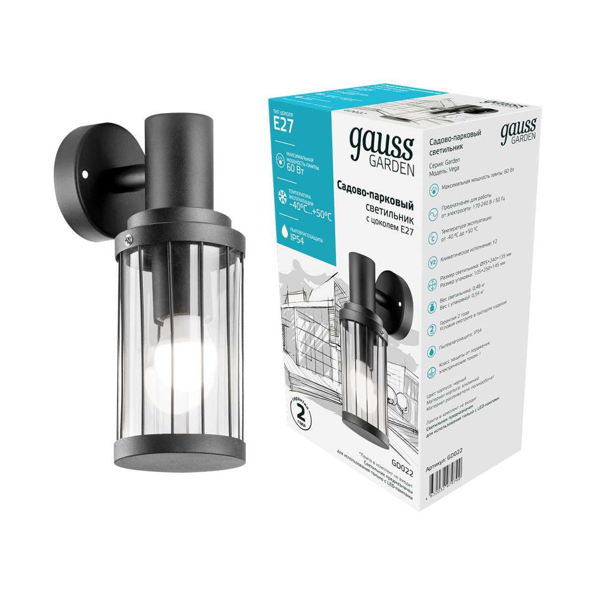 Уличный настенный светильник Gauss Vega GD022 купить в интернет-магазине светильников Mitris.kz!
