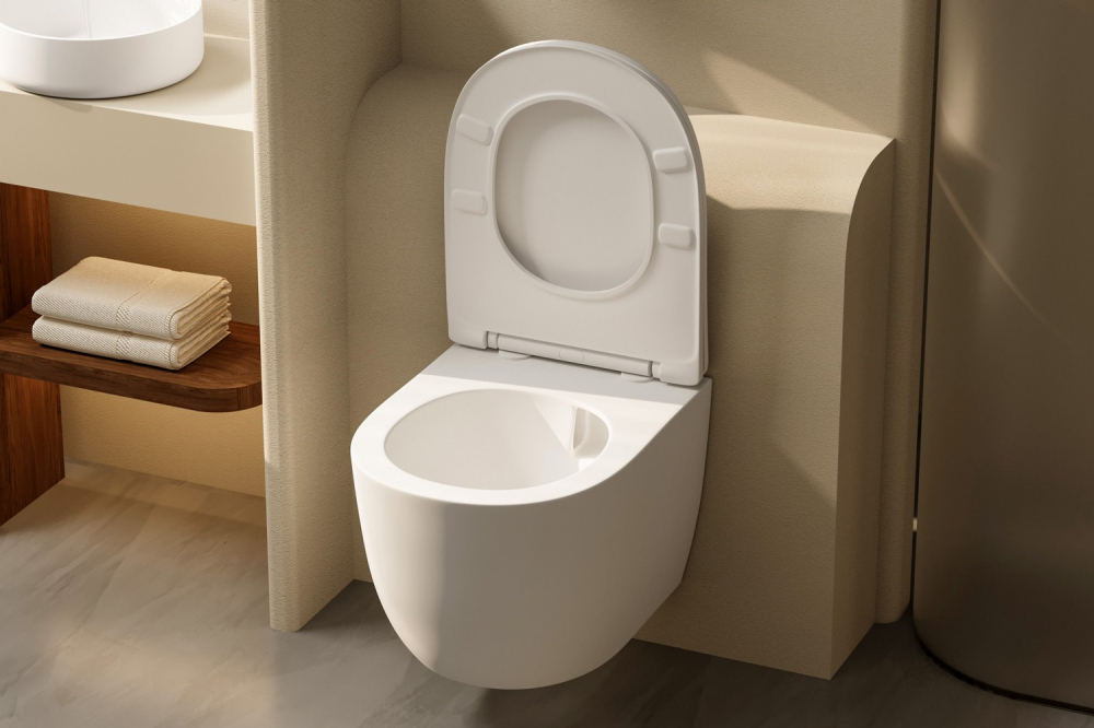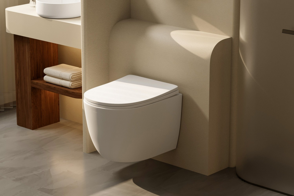 Унитаз ABBER Bequem AC1100TMW подвесной белый матовый, безободковый, смыв торнадо купить в интернет-магазине светильников Mitris.kz!