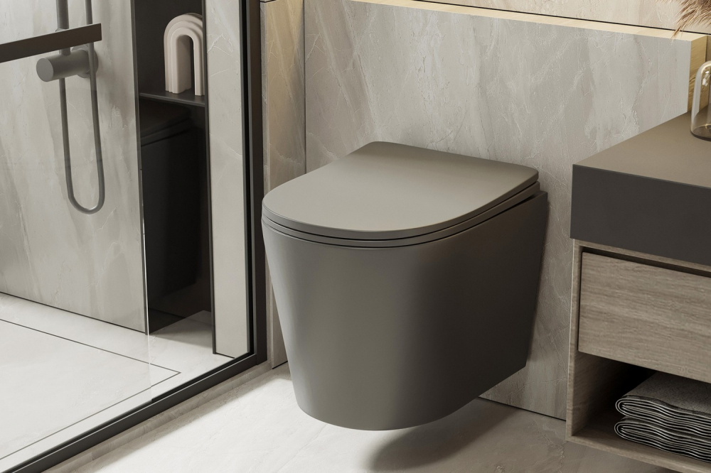 Унитаз ABBER Bequem AC1102TMG подвесной серый матовый, безободковый, смыв торнадо купить в интернет-магазине светильников Mitris.kz!