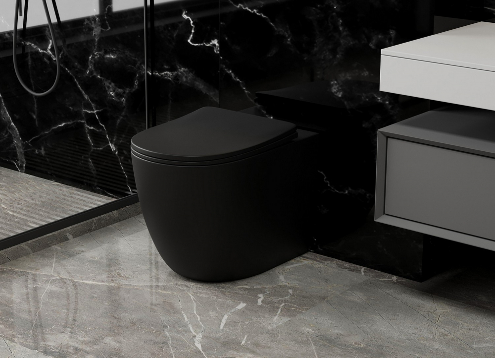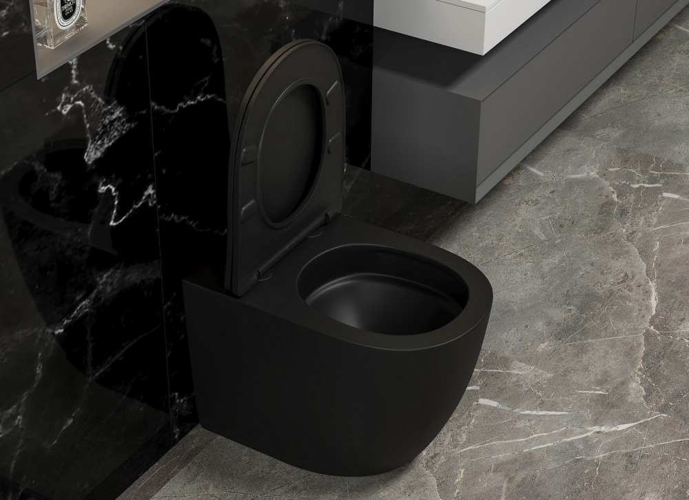 Унитаз ABBER Bequem AC1111TMB приставной черный матовый, безободковый, смыв торнадо купить в интернет-магазине светильников Mitris.kz!