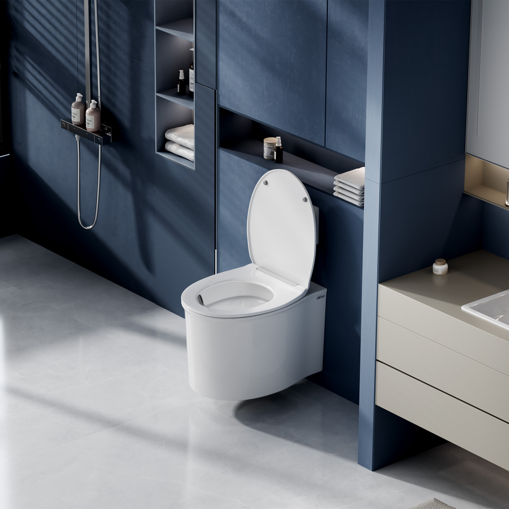Унитаз ABBER Bequem AC1127 подвесной белый, безободковый, смыв торнадо и струйный смыв купить в интернет-магазине светильников Mitris.kz!