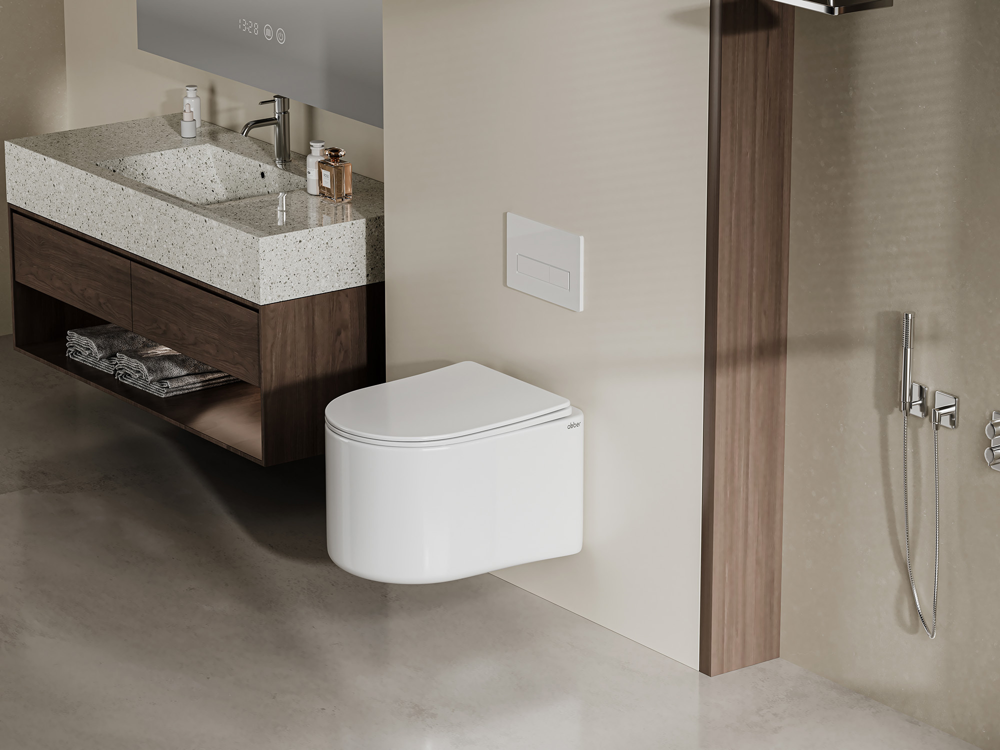 Унитаз ABBER Bequem AC1129 подвесной белый, безободковый, смыв торнадо купить в интернет-магазине светильников Mitris.kz!