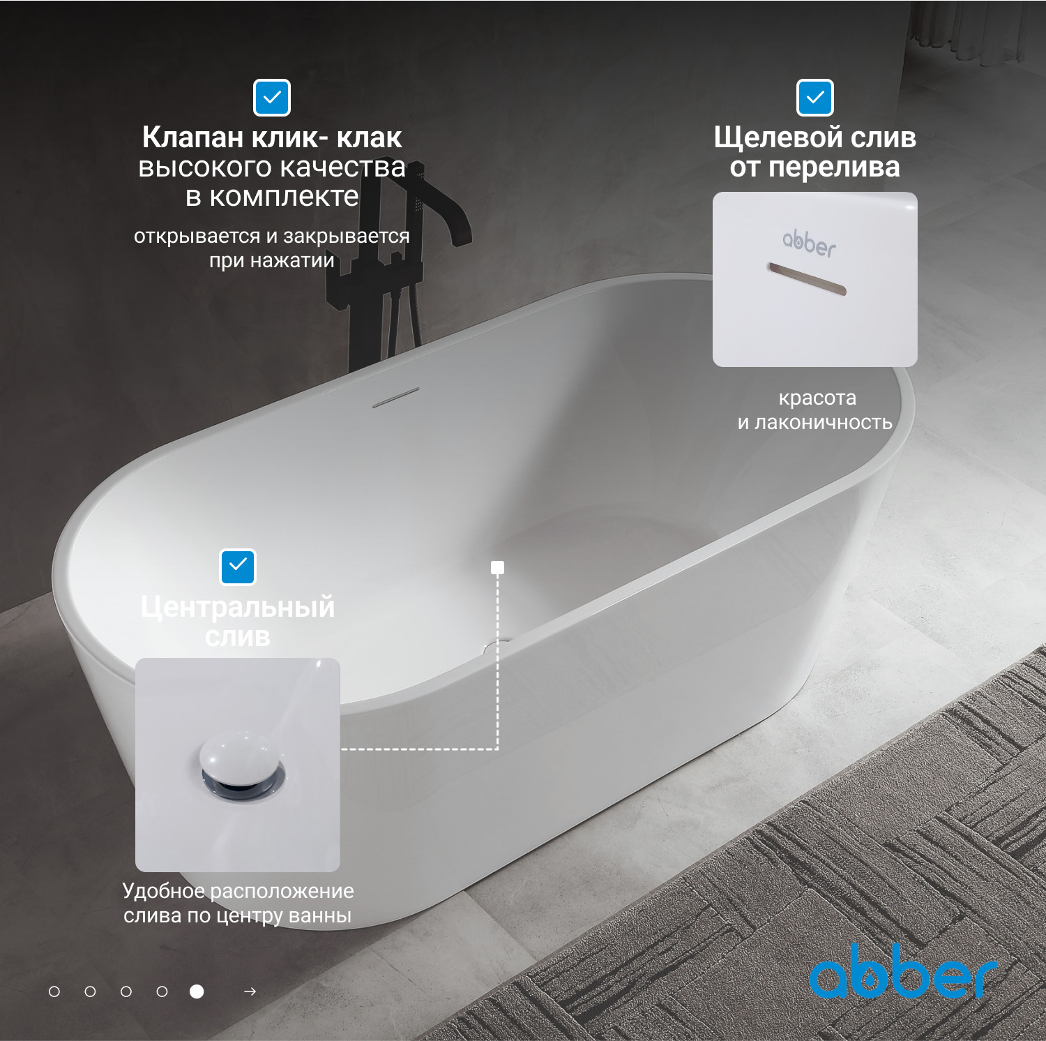 Акриловая ванна ABBER AB9320-1.6 белая купить в интернет-магазине светильников Mitris.kz!