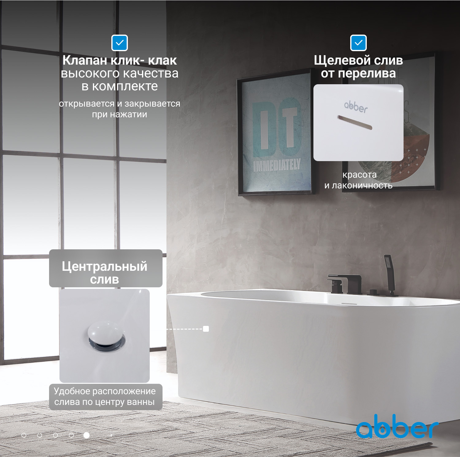 Акриловая ванна ABBER AB9335-1.7 L белая купить в интернет-магазине светильников Mitris.kz!
