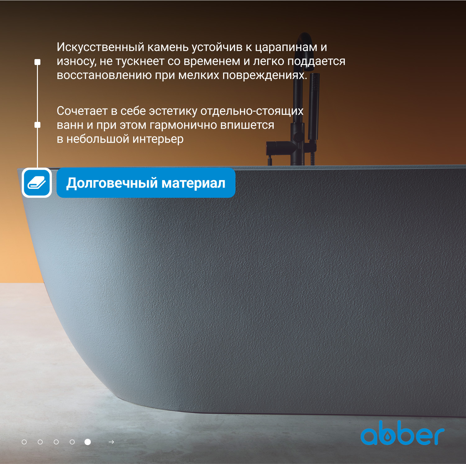 Ванна из искусственного камня ABBER Frankfurt AM9941G серая матовая купить в интернет-магазине светильников Mitris.kz!