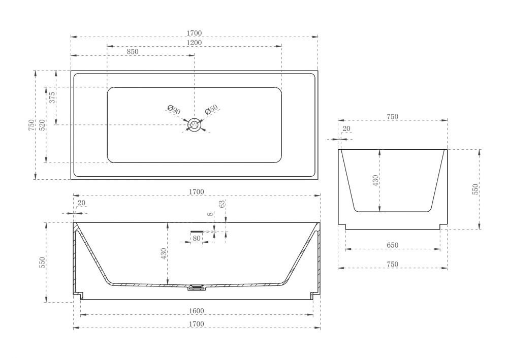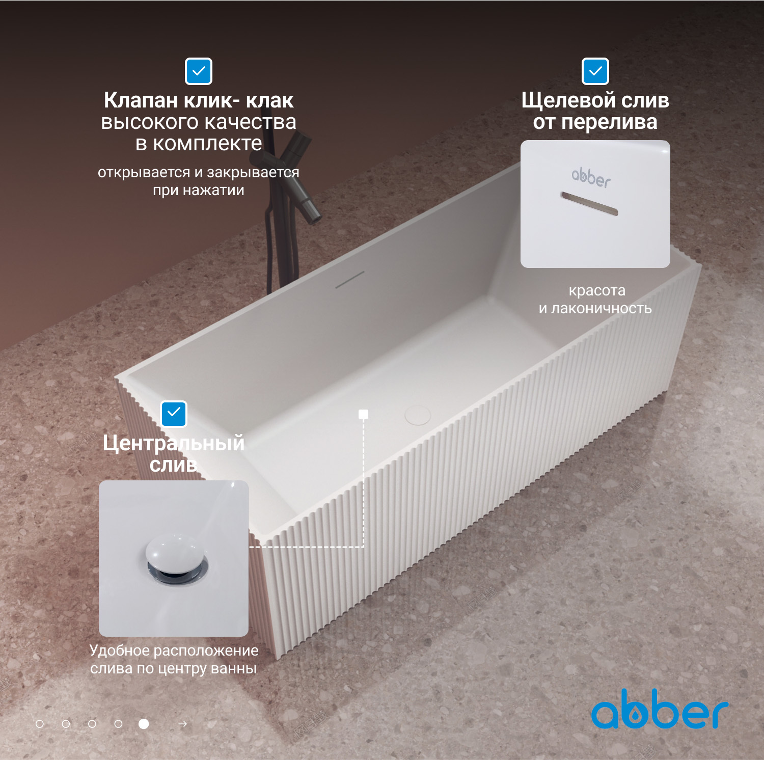 Ванна из искусственного камня ABBER Stein AS9602 белая матовая купить в интернет-магазине светильников Mitris.kz!