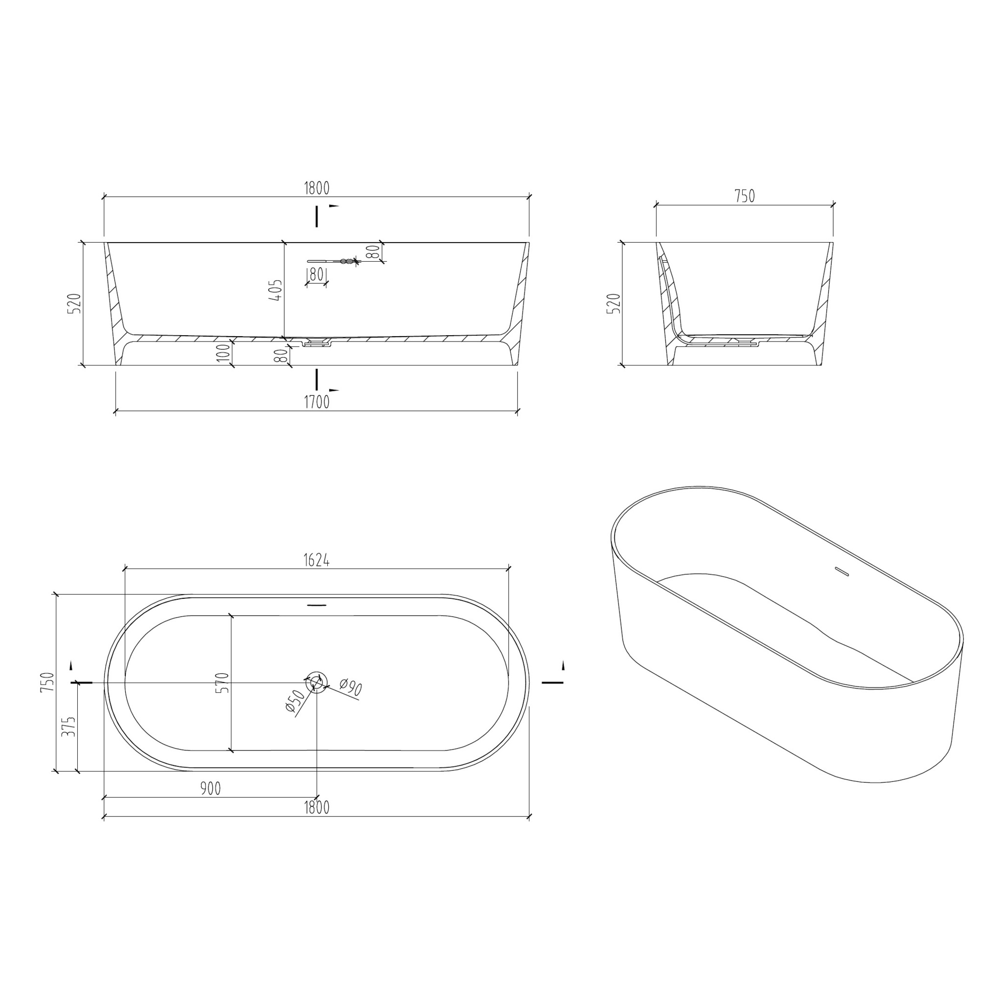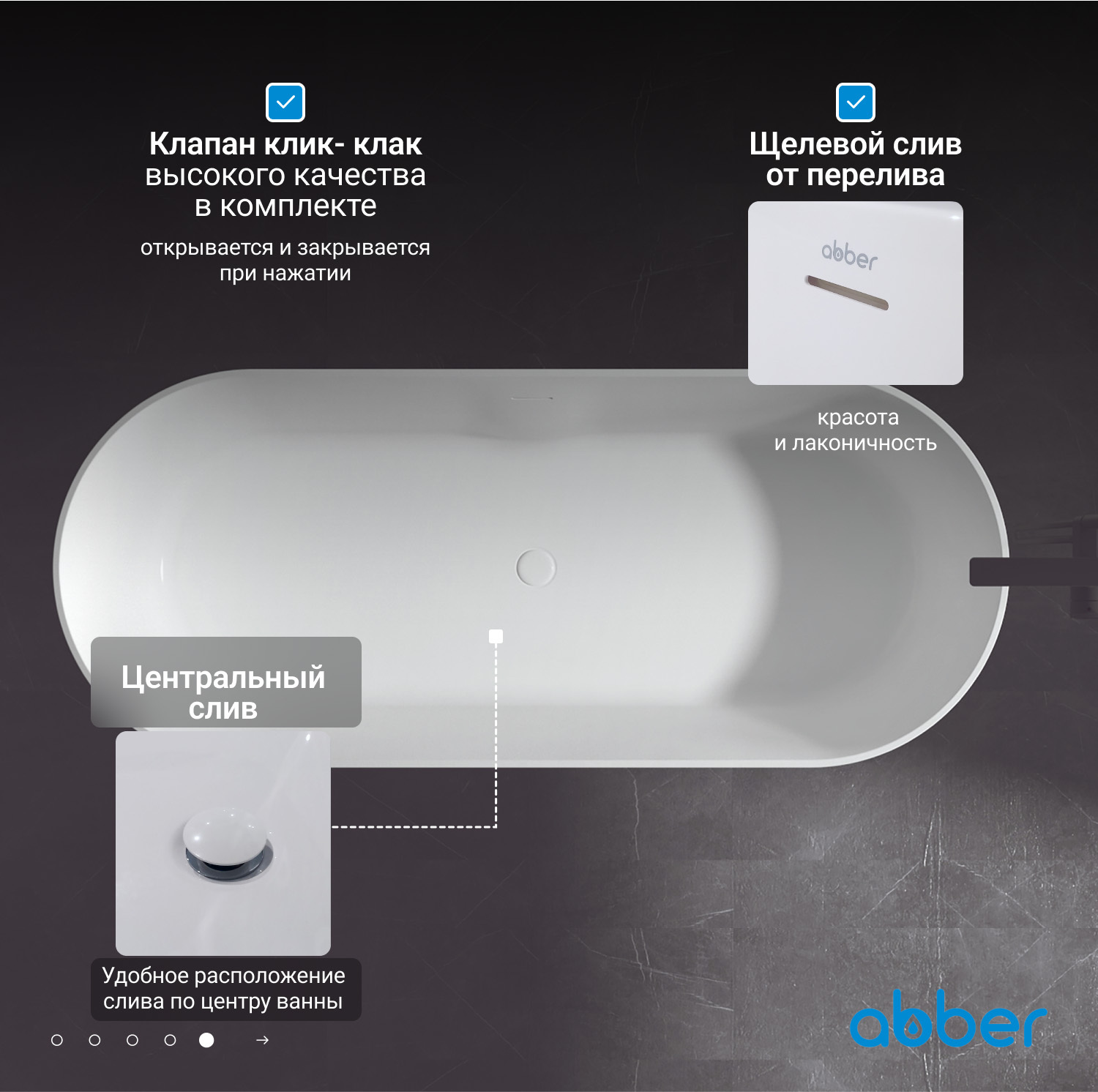 Ванна из искусственного камня ABBER Stein AS9614 белая матовая купить в интернет-магазине светильников Mitris.kz!