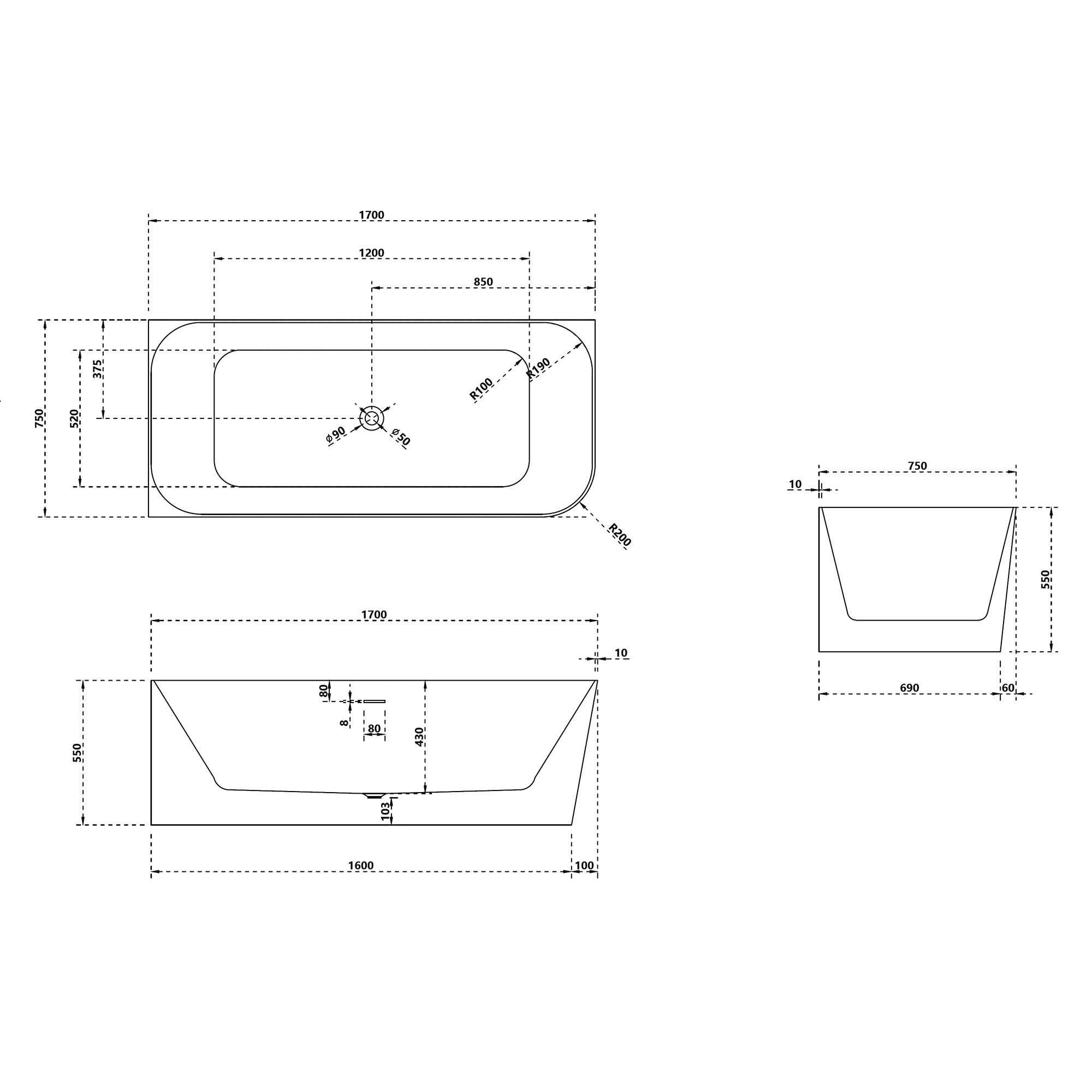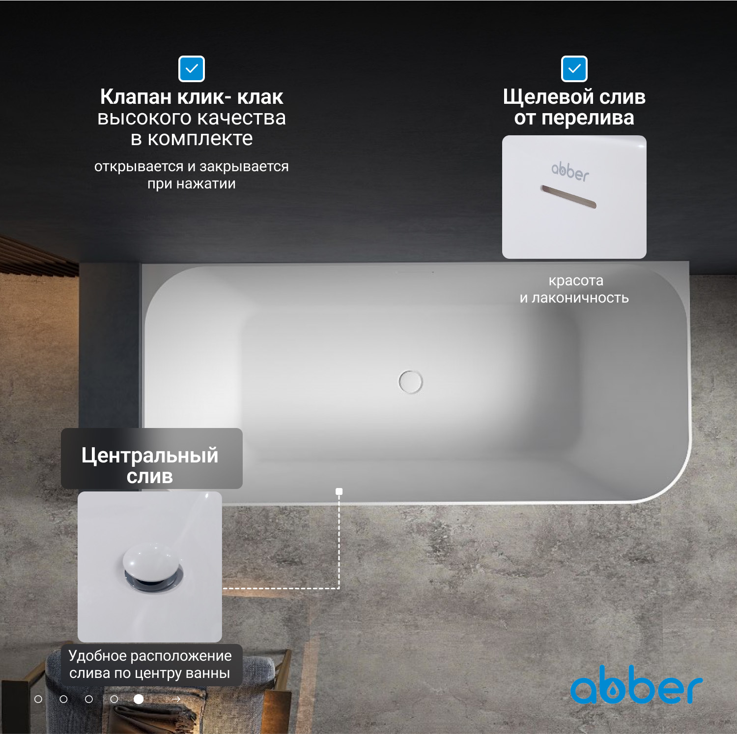 Ванна из искусственного камня ABBER Stein AS9621-1.7 L белая матовая купить в интернет-магазине светильников Mitris.kz!