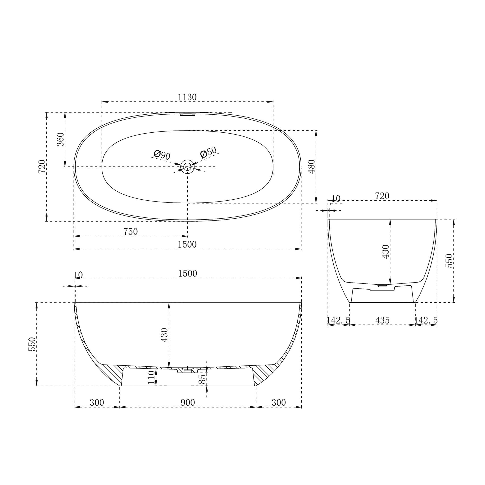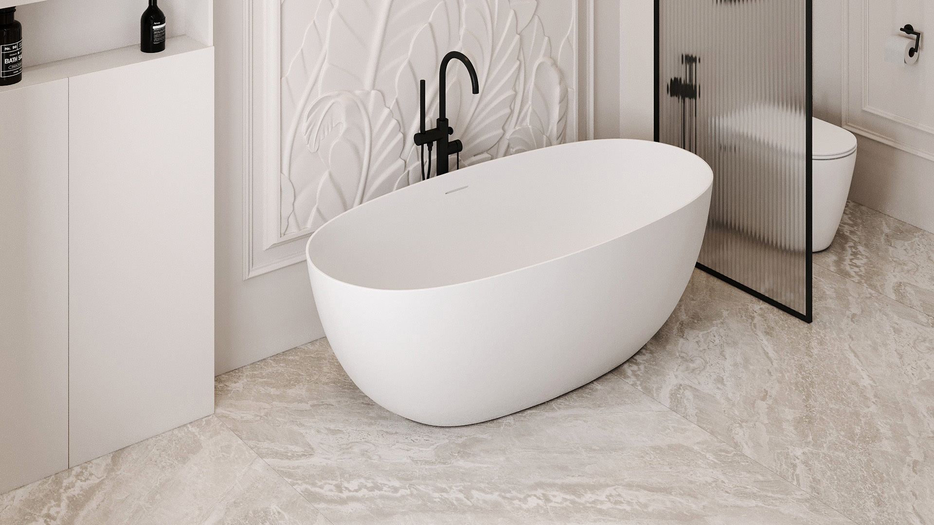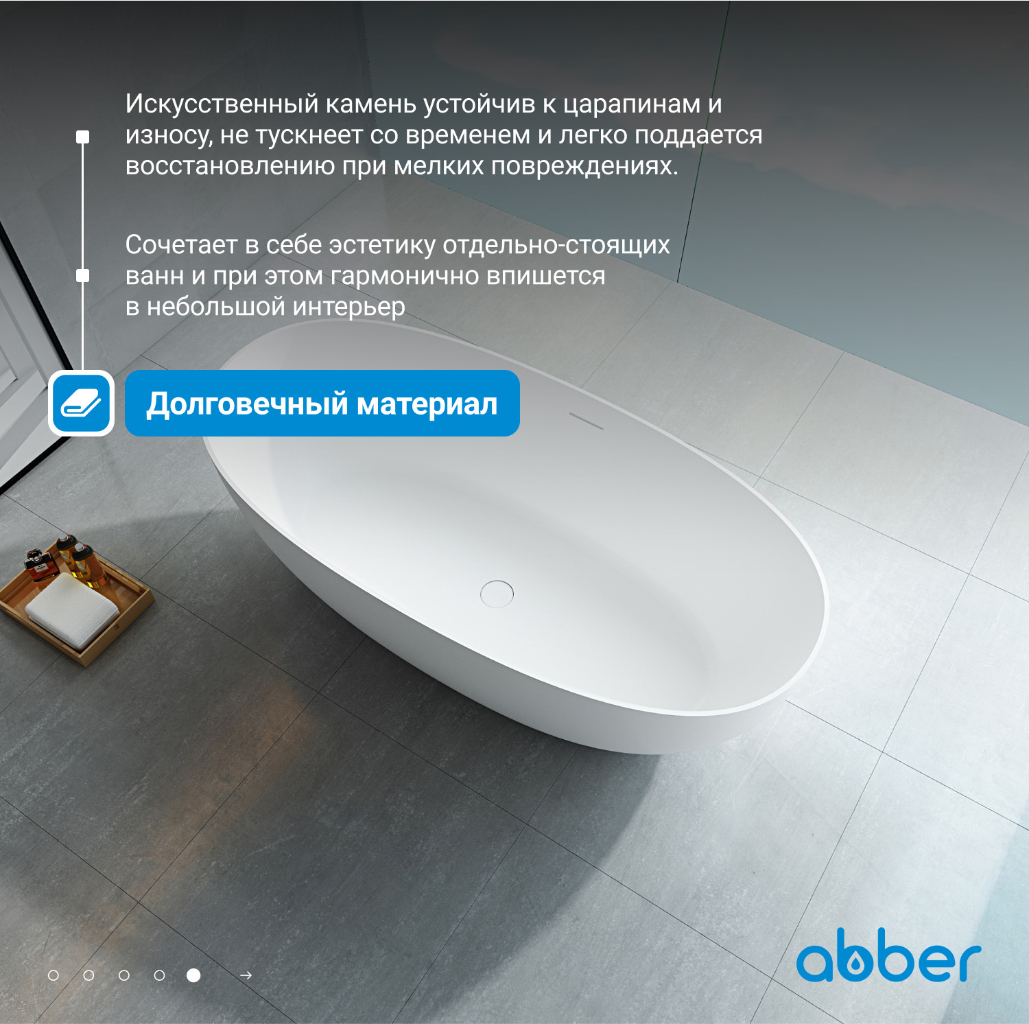Ванна из искусственного камня ABBER Stein AS9624-1.5 белая матовая купить в интернет-магазине светильников Mitris.kz!