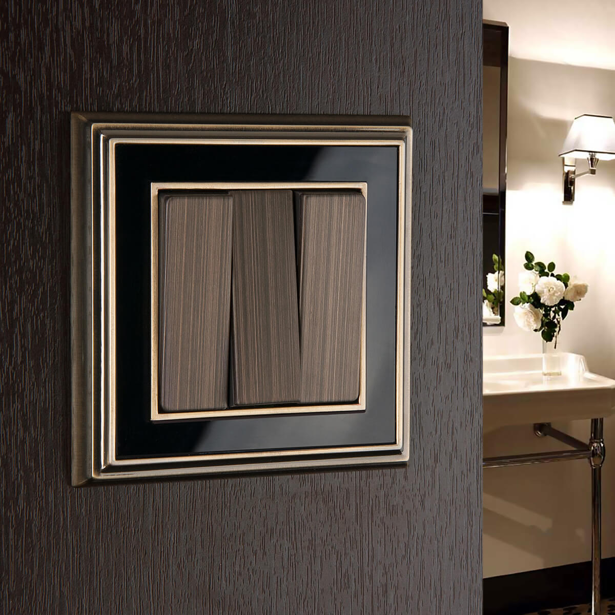 Лицевая панель Werkel выключателя трехклавишного бронзовая WL12-SW-3G-CP 4690389100567 купить в интернет-магазине светильников Mitris.kz!