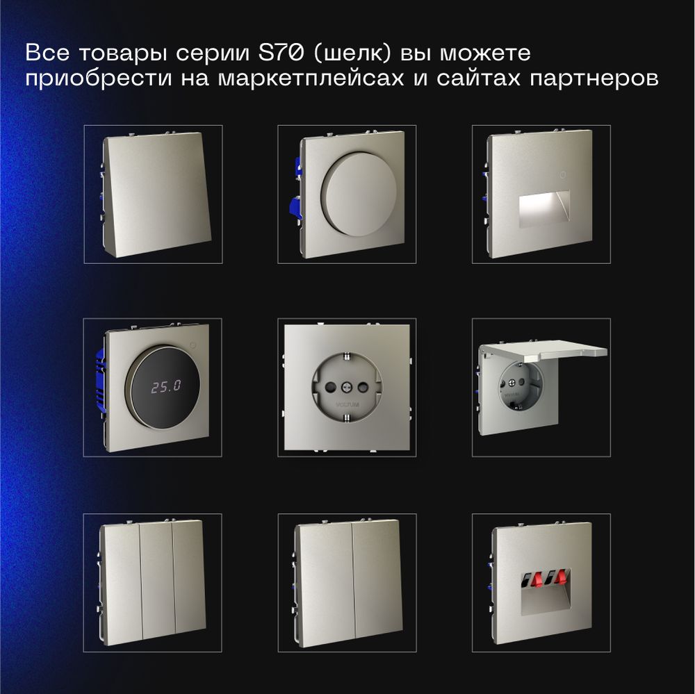 Проходной переключатель встраиваемый Voltum S70 одноклавишный с подсветкой 10А, (шелк) VLS010404 купить в интернет-магазине светильников Mitris.kz!