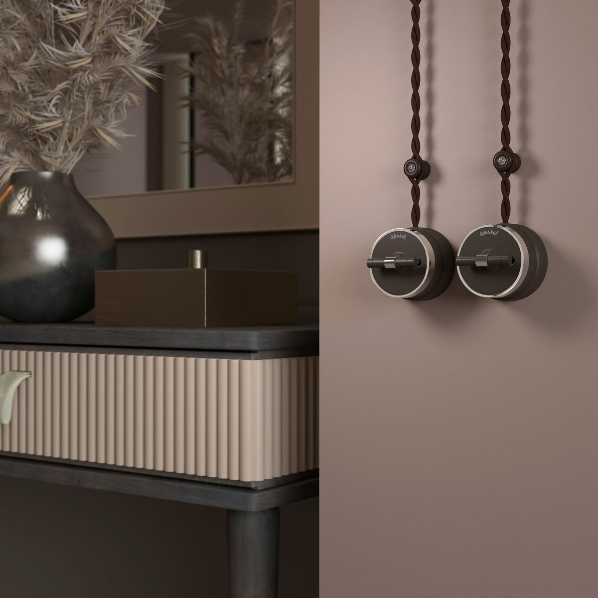 Выключатель двухклавишный на 4 положения Werkel Vintage мокко матовый/хром W5822052 4690389183171 купить в интернет-магазине светильников Mitris.kz!