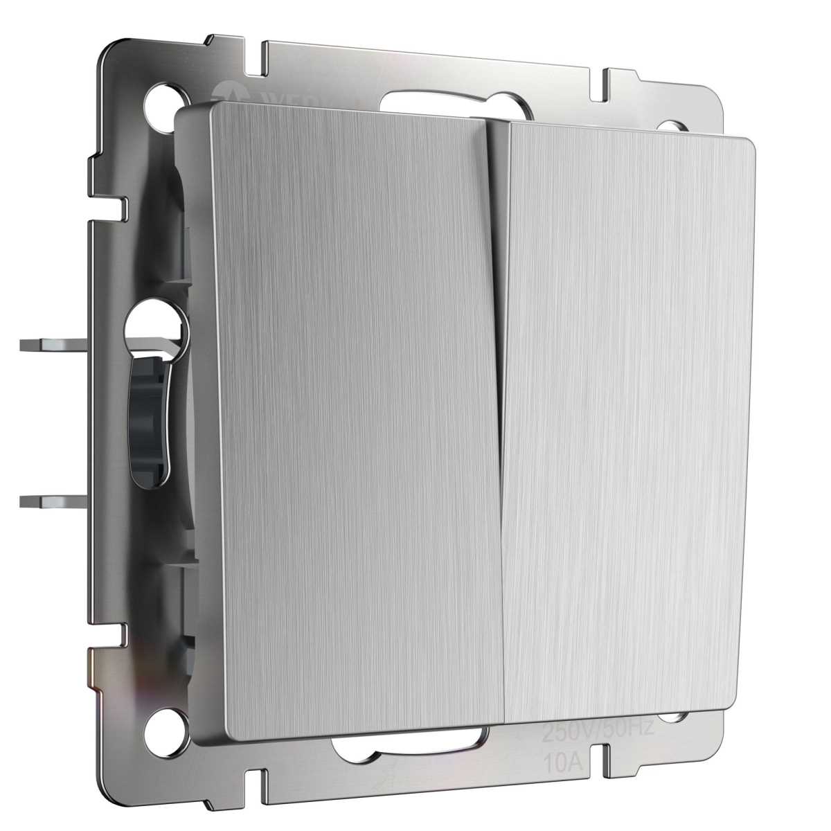Выключатель двухклавишный Werkel (cеребряный рифленый) W1122009 4690389159626 купить в интернет-магазине светильников Mitris.kz!